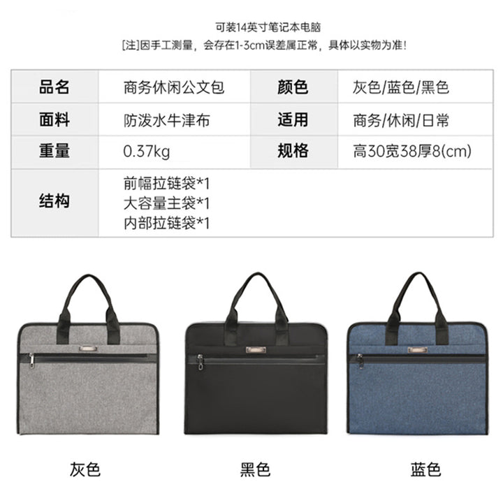 Handheld briefcase 14 inch computer bag waterproof and wear-resistant Oxford cloth meeting document bag can be printed with logo.