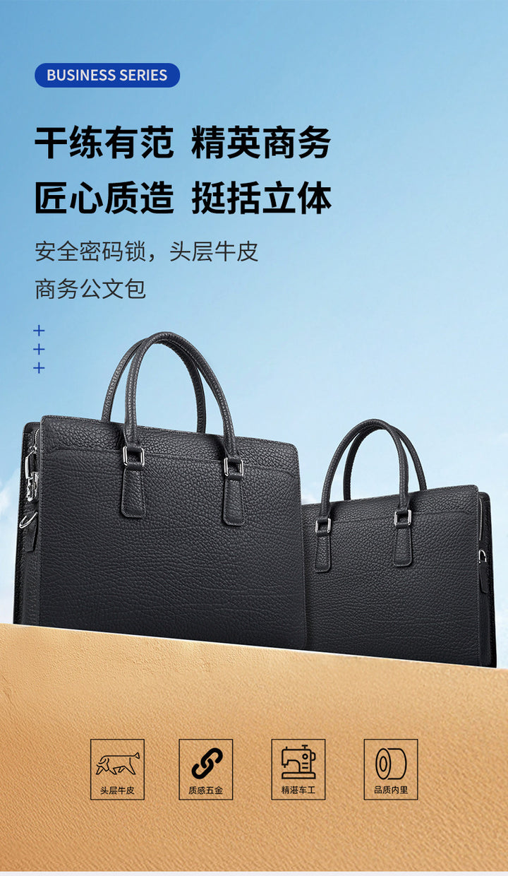 Handheld men's bag Large capacity simple business trip briefcase Leather computer bag Waterproof fashion high-end men's business bag