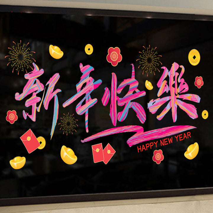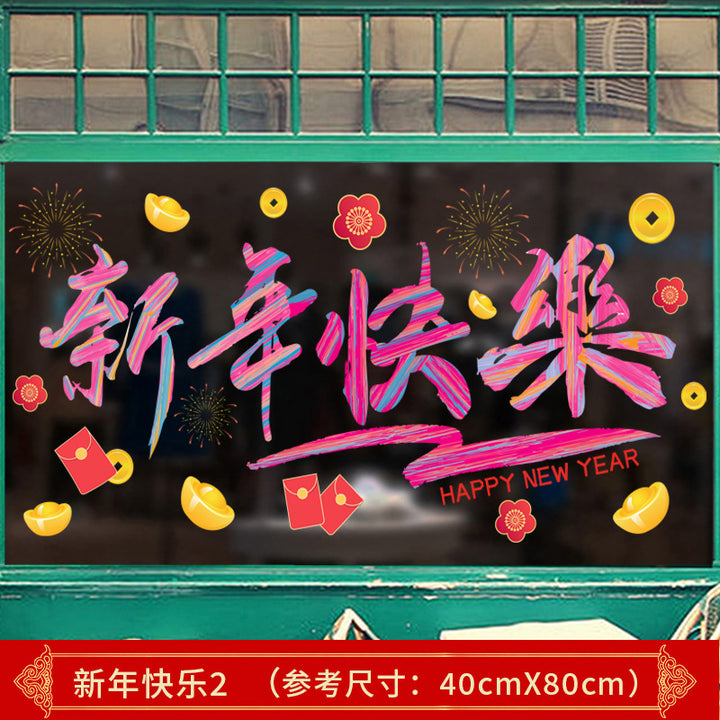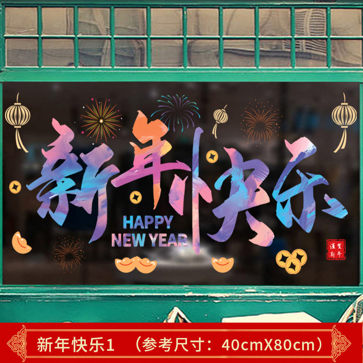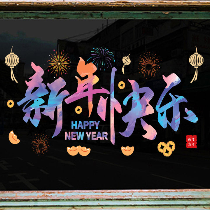 Happy New Year New Creative Rainbow Window Grilles New Year Decoration Stickers Glass Static Stickers Car Window Stickers Static No Glue