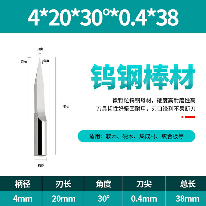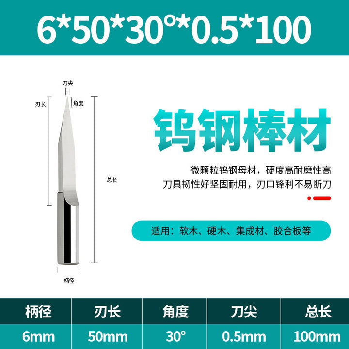 Hard bar numerical control flat bottom sharp knife 4/6mm lengthened taper sharp knife relief woodworking engraving knife efficient