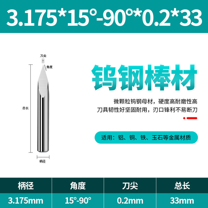 Hard bar three-edged sharp knife tungsten steel alloy tool computer engraving machine copper aluminum jade relief center tungsten steel milling cutter