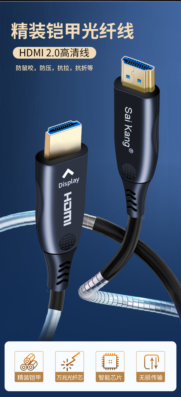Hardcover armor HDMI fiber cable 2.0 high definition cable TV projector video cable 4K engineering cable
