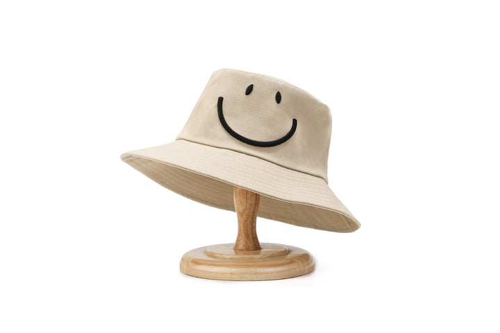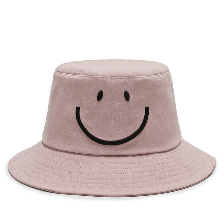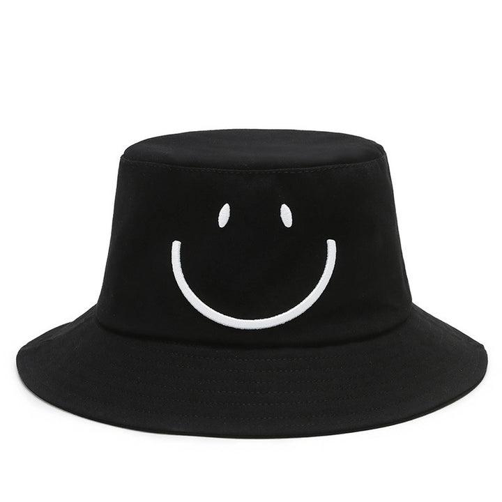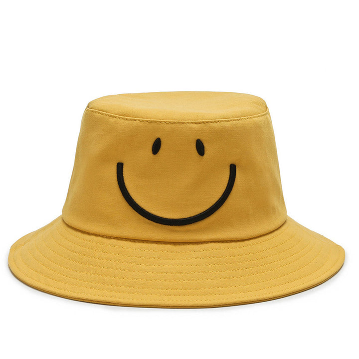 Hat ladies spring and summer 2023 new Korean version embroidery foldable smiley face hat trendy sunscreen versatile bucket hat