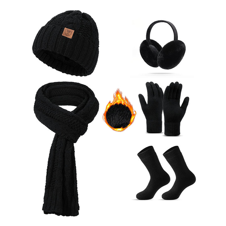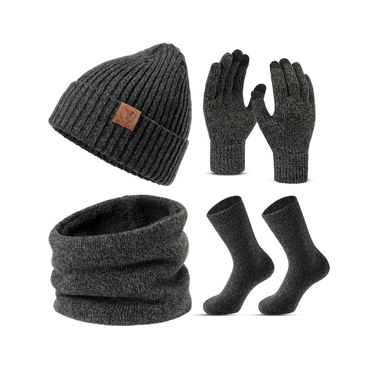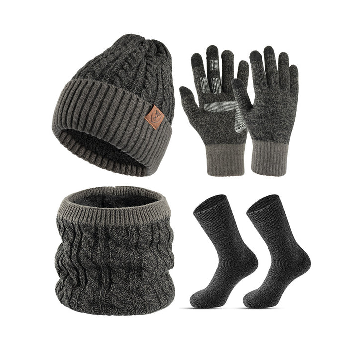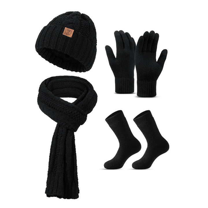 Hat Scarf Gloves Socks Four-piece Set Fleece Thickened Adult Winter Warm Knitted Hat Set