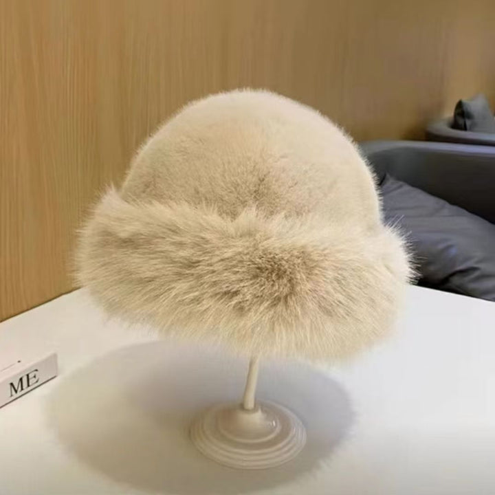 Hat women's autumn and winter plush hat imitation mink basin hat warm and cold-proof Mongolian hat shows small face and ear protection landlord fas...