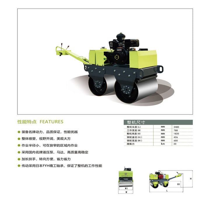 Heilongjiang hand-held double steel wheel roller, gasoline and diesel vibration compactor front and rear self-walking steering flexible