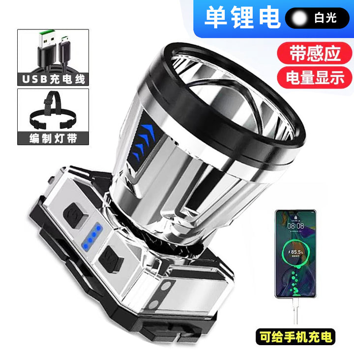Helmet type LED headlight super bright waterproof camping induction flashlight long battery life lithium battery charging mobile phone