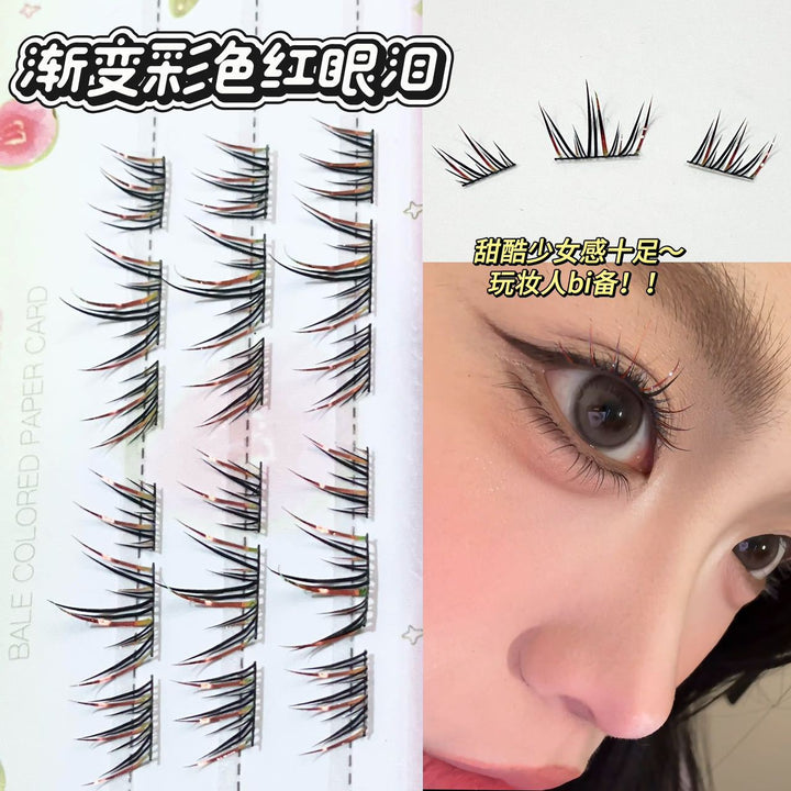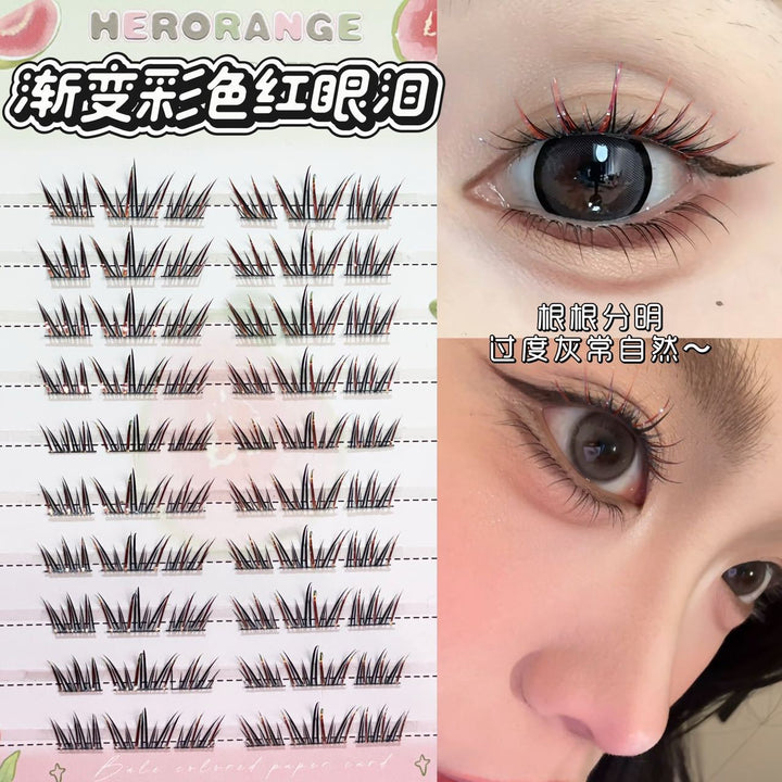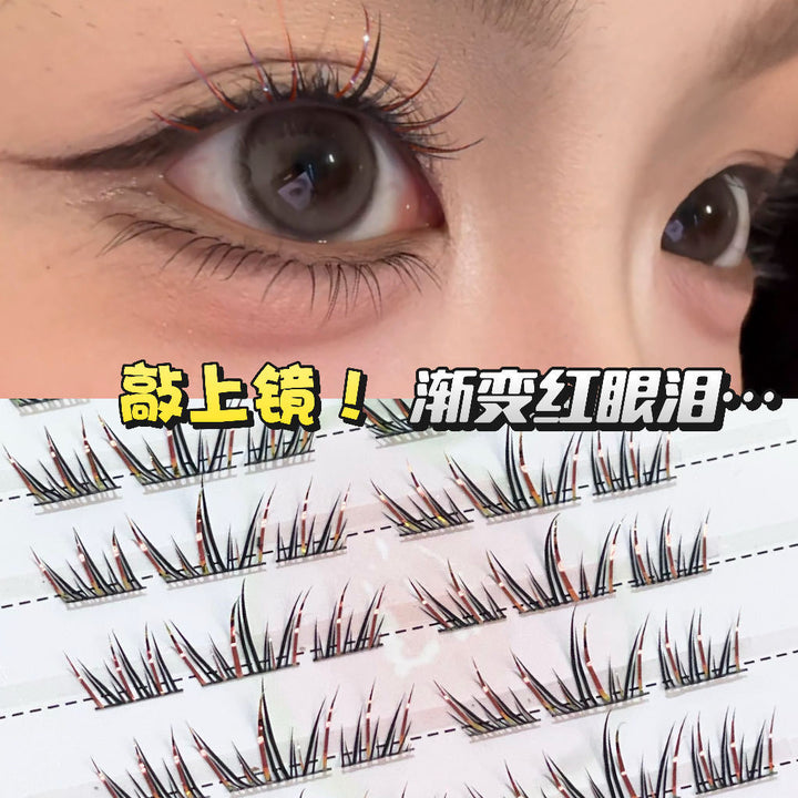 01 #gradual change color red tears false eyelashes three rows (glue) 18 clusters, 02 #gradual change color red tears false eyelashes ten rows (glue) 60 clusters, 03#渐变彩色红眼泪假睫毛六排 (免胶款)36簇 |