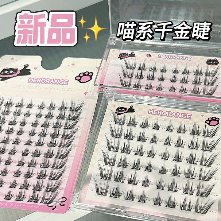 01 #Meow daughter gold false eyelashes three rows (glue model) 24 clusters, 02 #Meow daughter gold false eyelashes ten rows (glue model) 80 clusters, 03 #Meow daughter gold false eyelashes six rows (glue-free) 48 clusters |