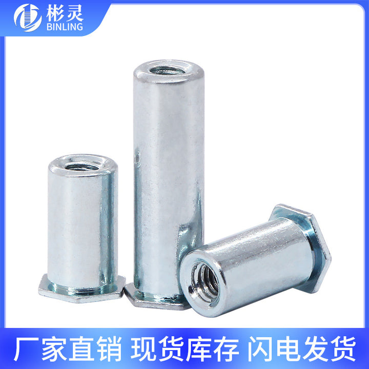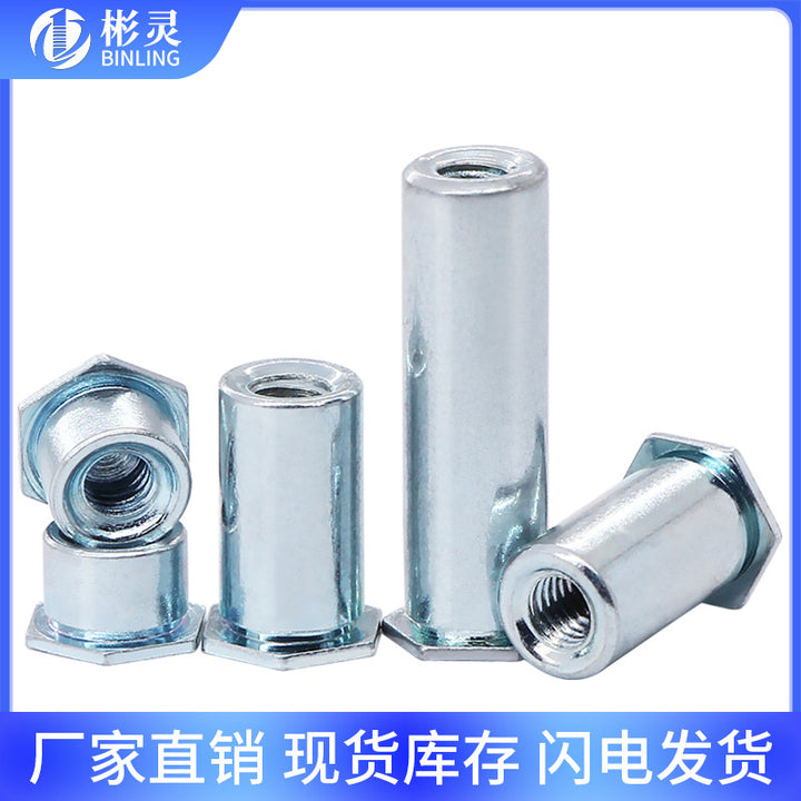 Hexagonal blind hole riveting nut column blue and white zinc platen stud riveting part riveting screw sleeve riveting BSO-M3