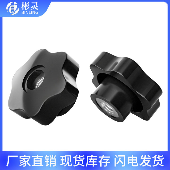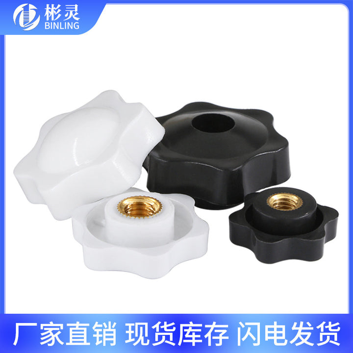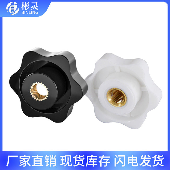 Hexagonal plum blossom handle nut through hole plastic glue head hand screw nut blind hole copper core handle knob M4-M12