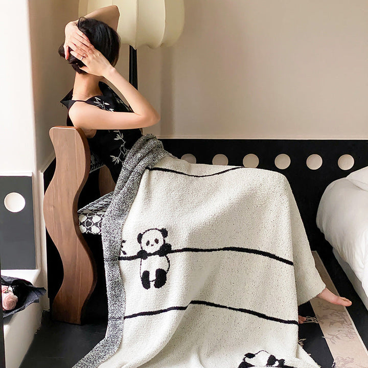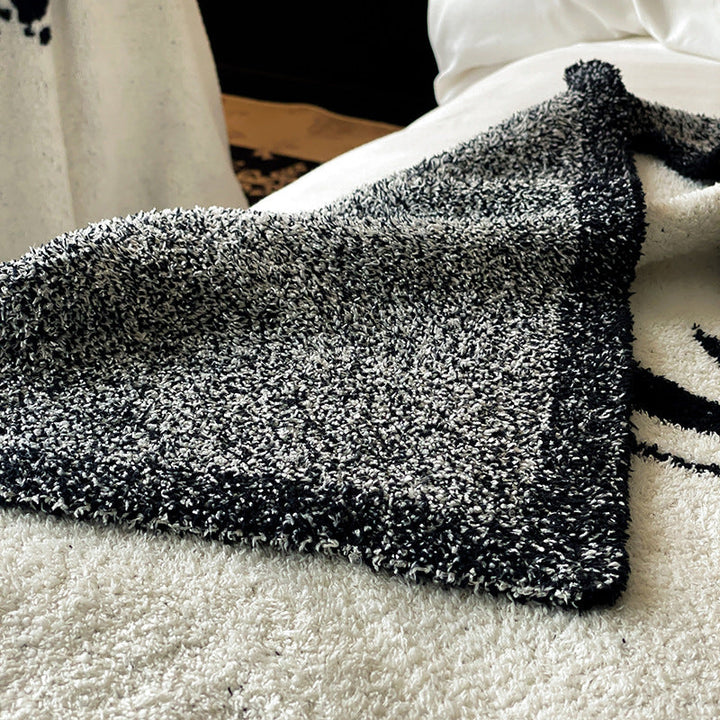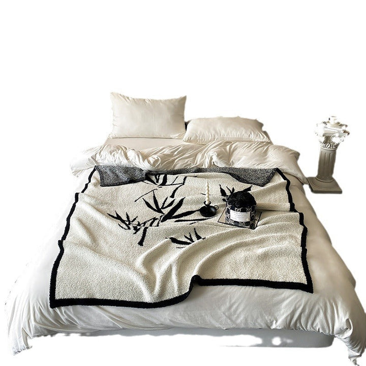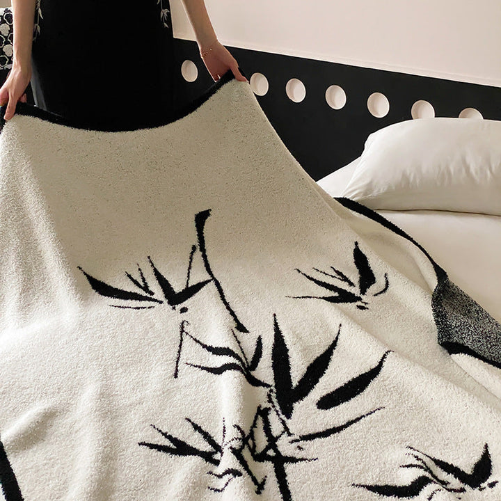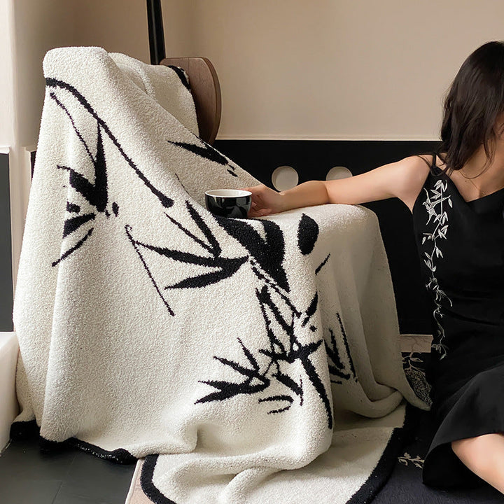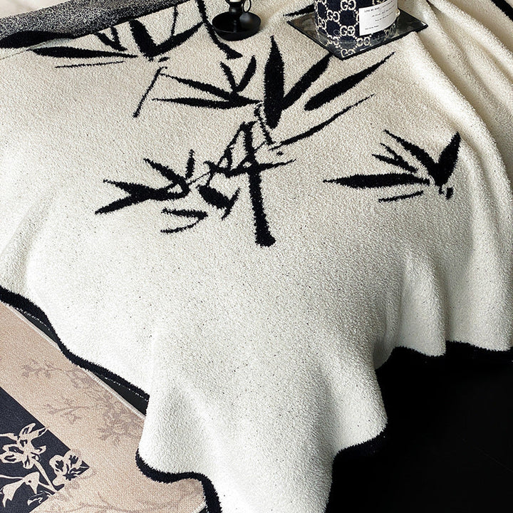High-end autumn and winter Chinese-style jacquard half-edge fleece blanket, black and white ink sofa blanket, no hair loss, anti-static blanket