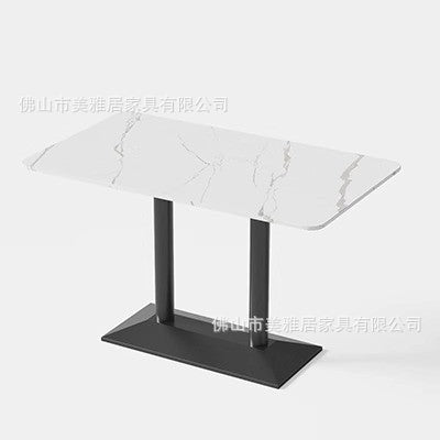 High-end canteen dining table and chair staff company employees factory school four people six people conjoined rock slab dining table and chair co...