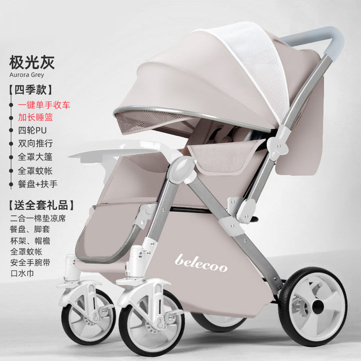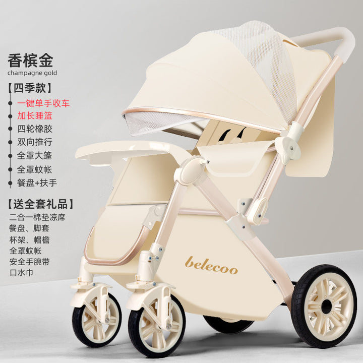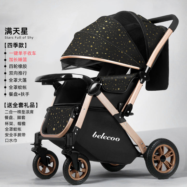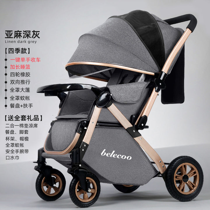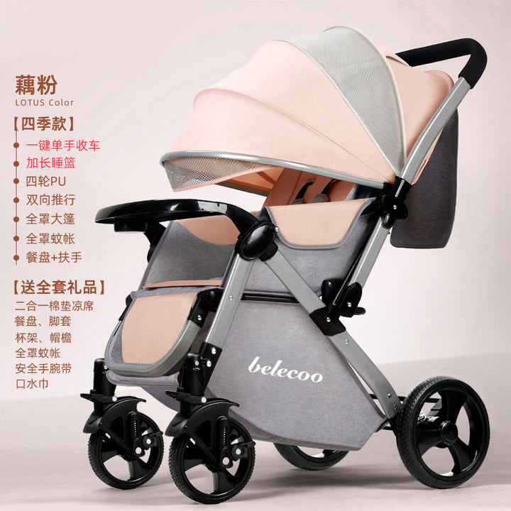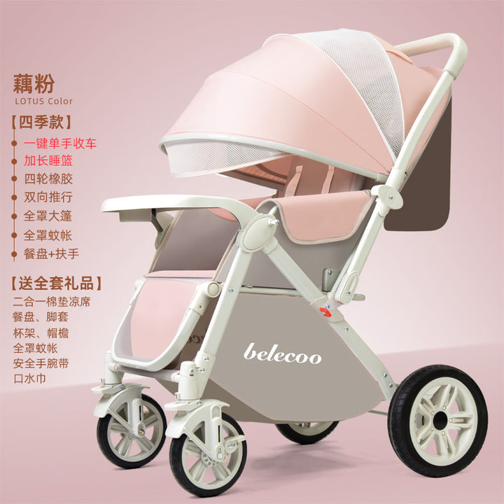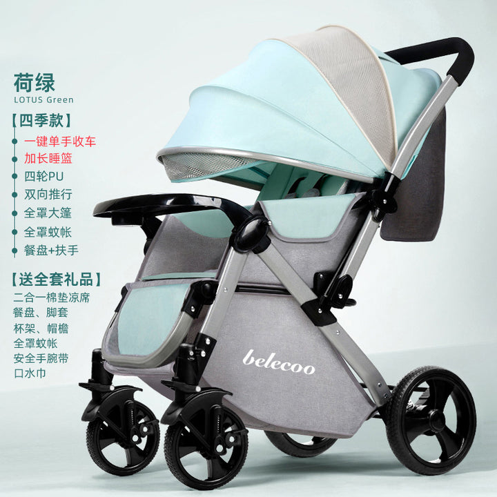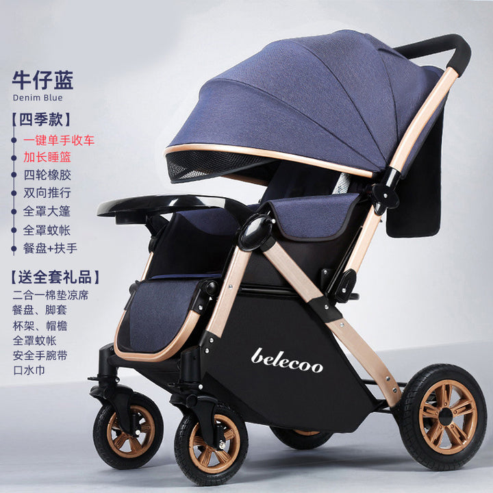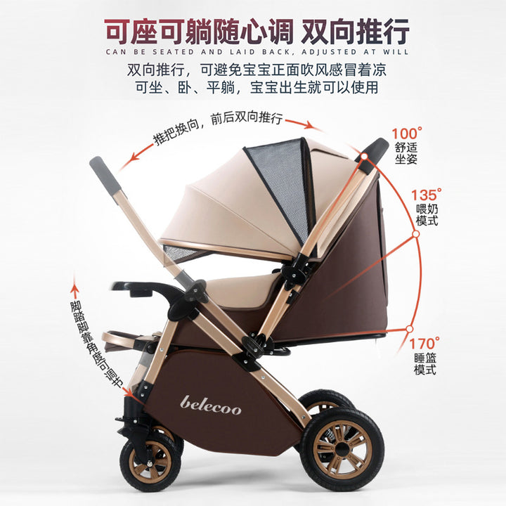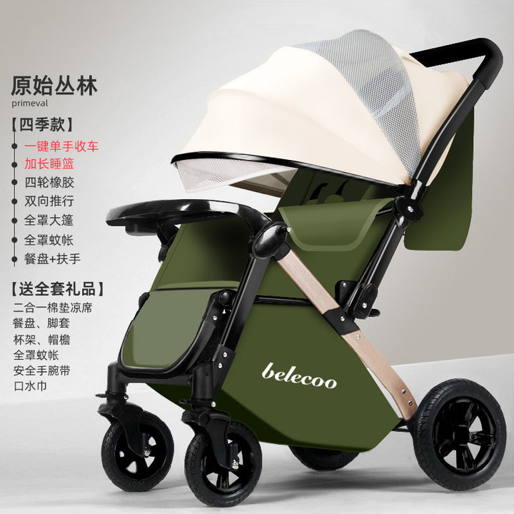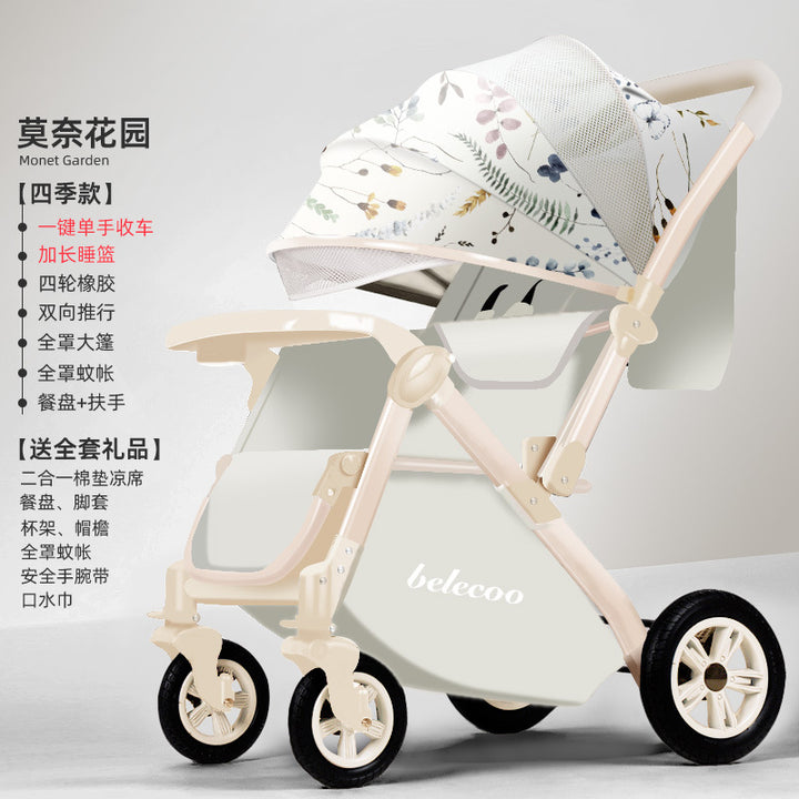 High landscape stroller can sit and lie down, lightweight folding baby umbrella cart, two-way baby stroller, shock-absorbing stroller
