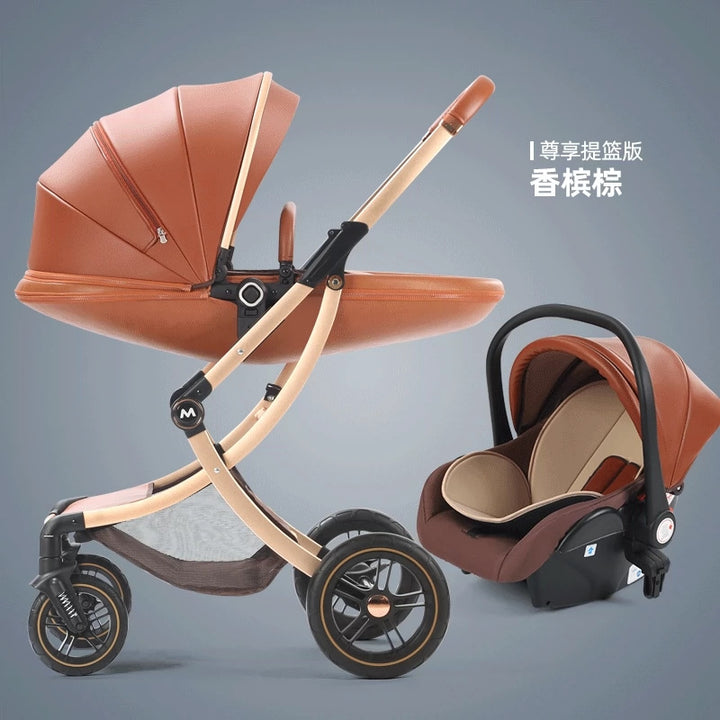 High landscape stroller can sit and lie down pu eggshell cart lightweight folding two-way newborn children's baby cart wholesale