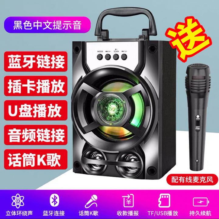High-quality Bluetooth audio, large volume singing, heavy subwoofer, convenient square dance, portable small audio, wired microphone