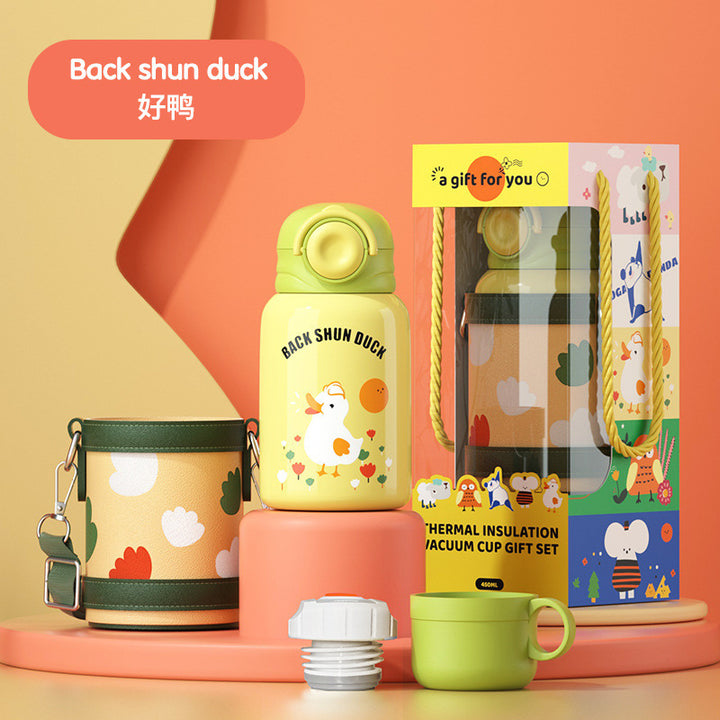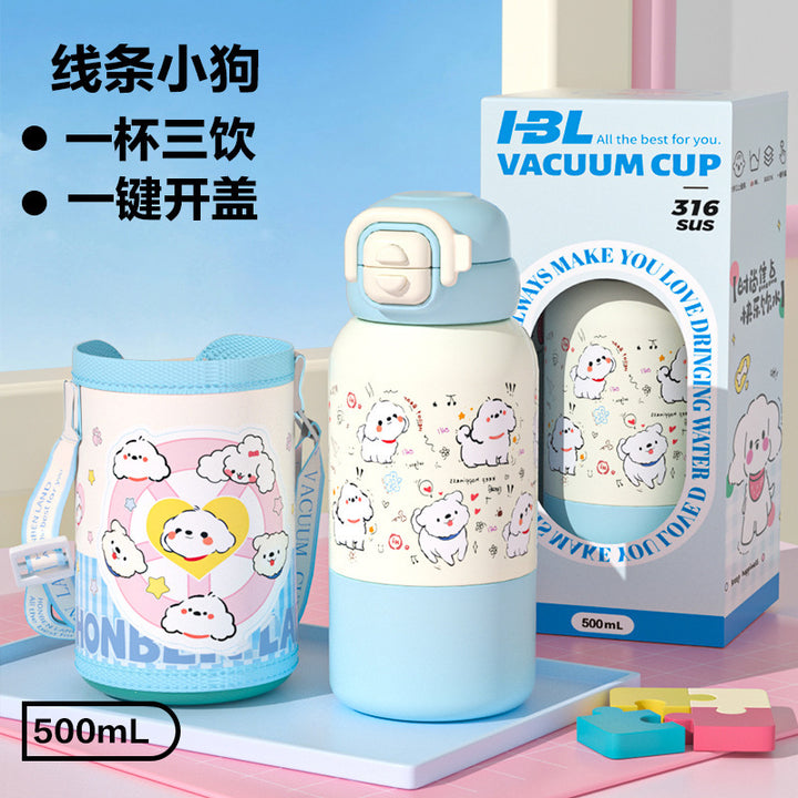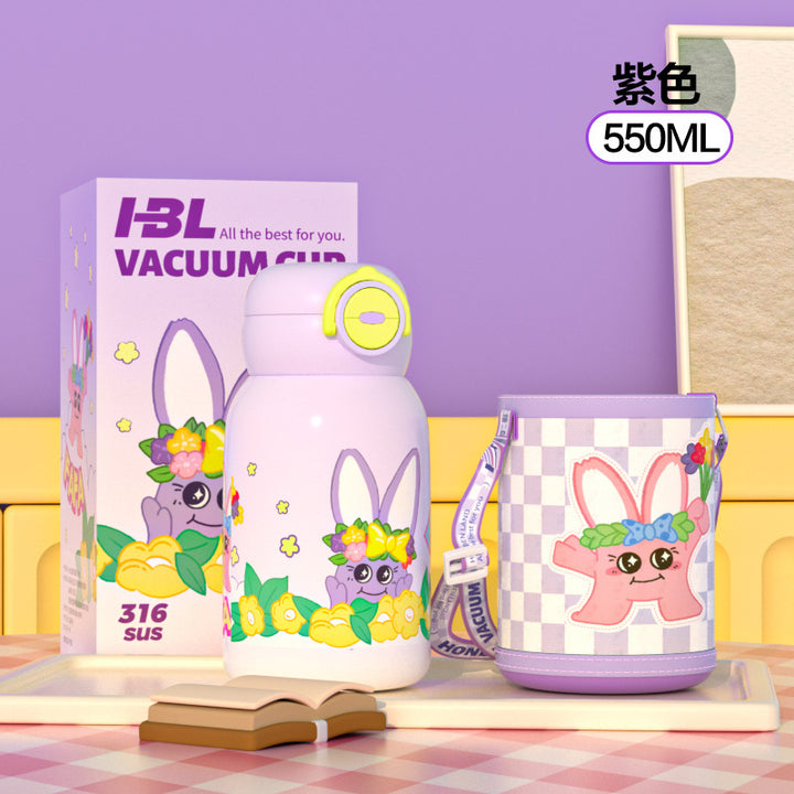 High value children's thermos cup 316 stainless steel food grade water cup anti-drop straw cup student portable kettle
