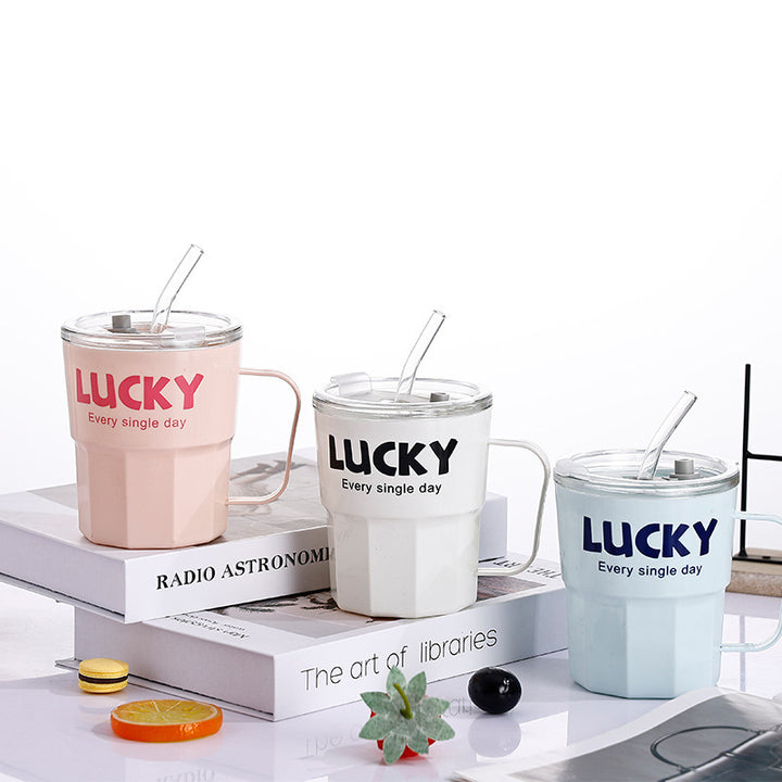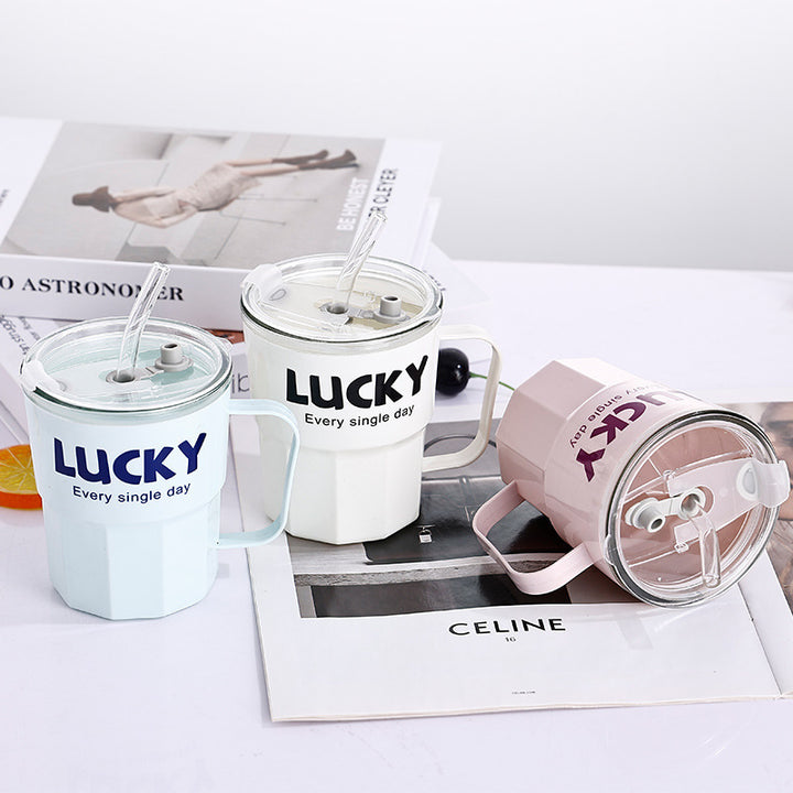 High value cup with straw handle mug with handle summer design coffee cup juice milk cup whol...
