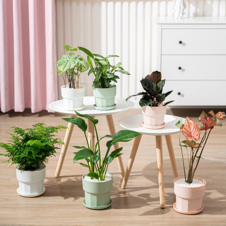 ivory white, Mint Green, cherry blossom powder |