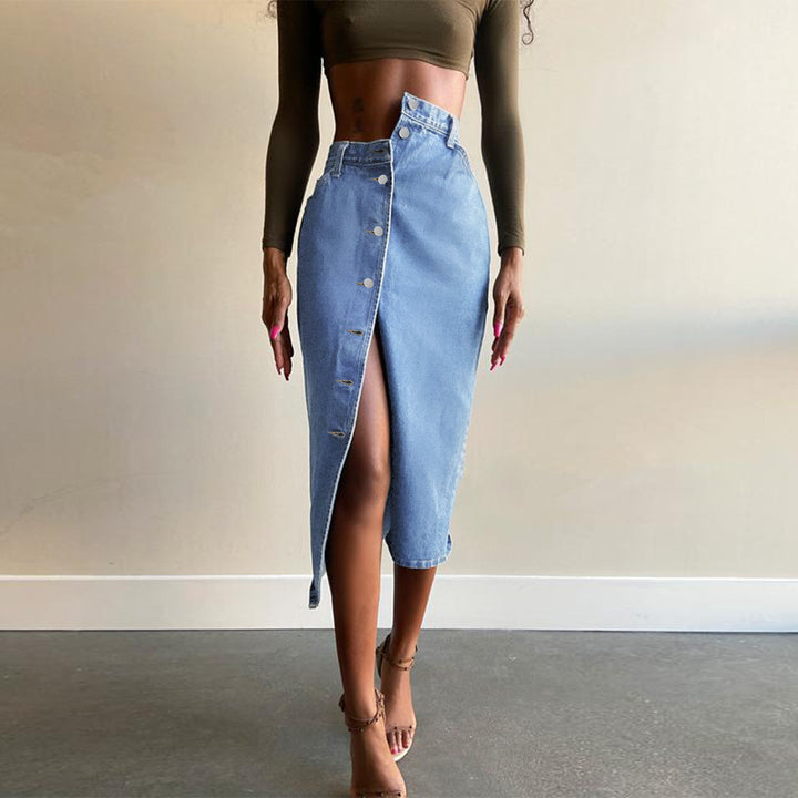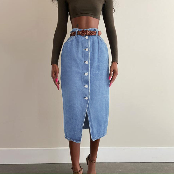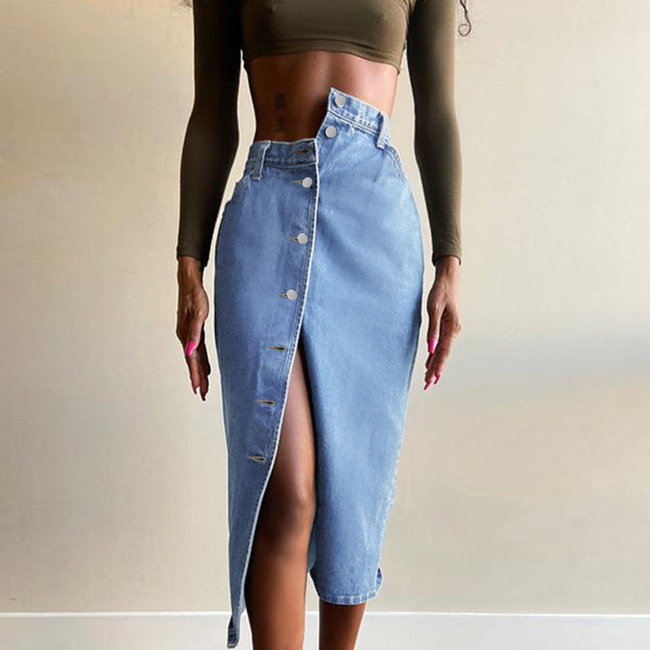 high waist slim cut denim skirt wish amazon European and American women's clothing