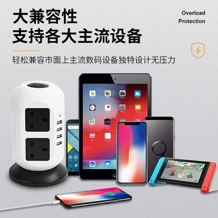 Home office US European standard vertical socket 4usb British standard power strip with overload protection South African standard Italian socket