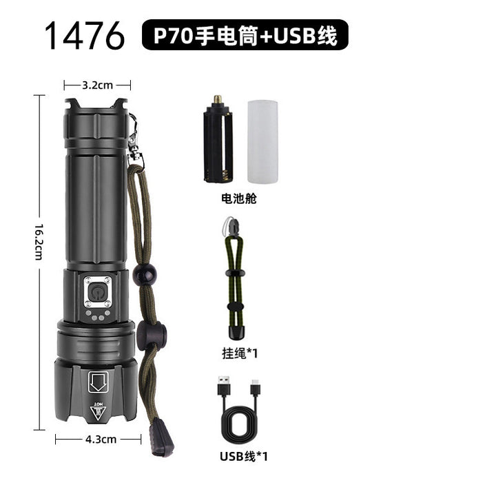 Hot Sale XHP70 Strong Light Flashlight USB Charging Outdoor Zoom Power Display LED Flashlight