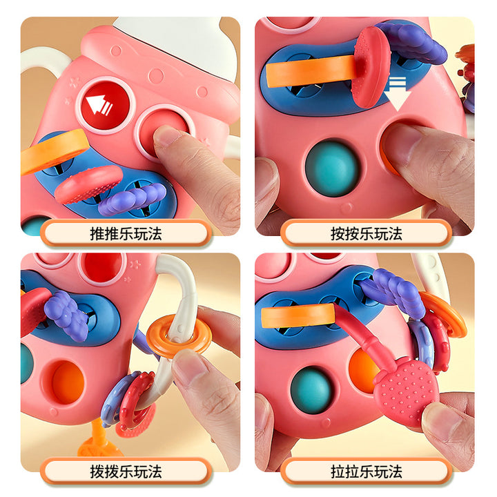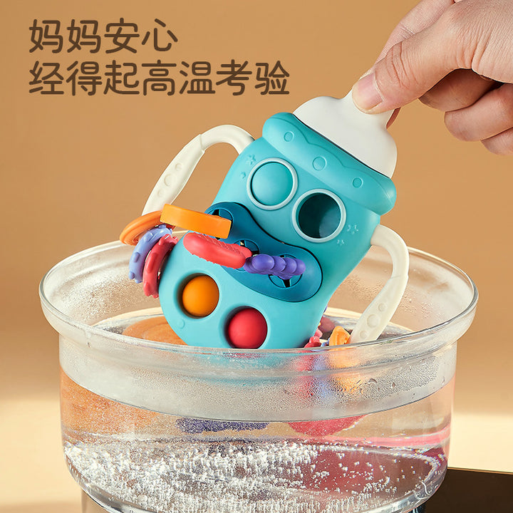 hot-selling baby bottle Lala Le baby can gnaw soft rubber toy grip press music pumping music