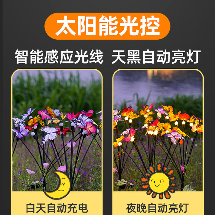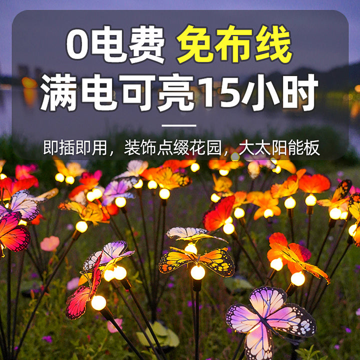 hot-selling courtyard atmosphere garden decoration waterproof lawn light solar butterfly floor plug light