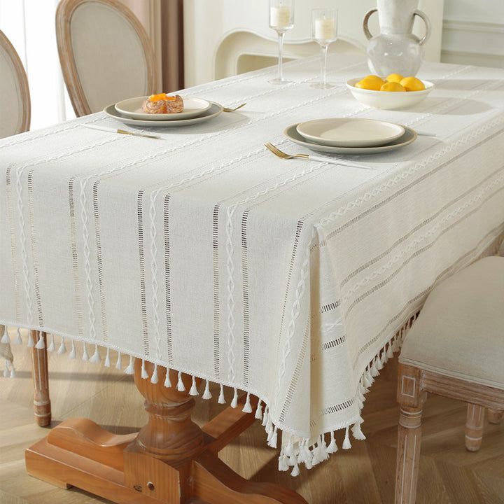hot-selling table cloth cotton and linen tablecloth solid color hollow striped cover cloth coffee table fabric decorative atmosphere
