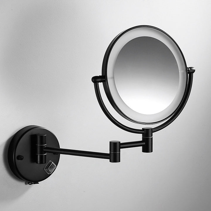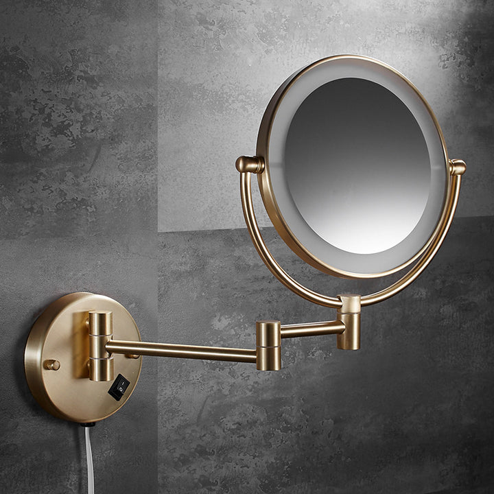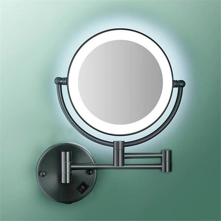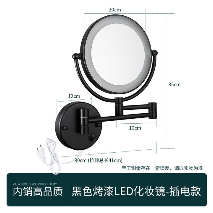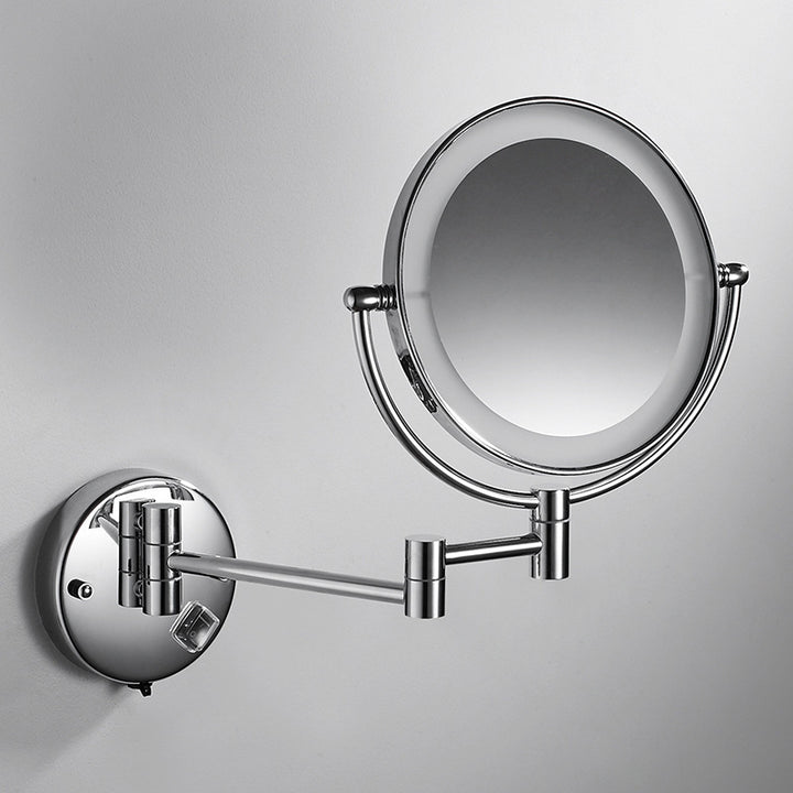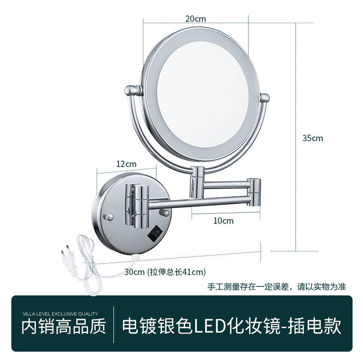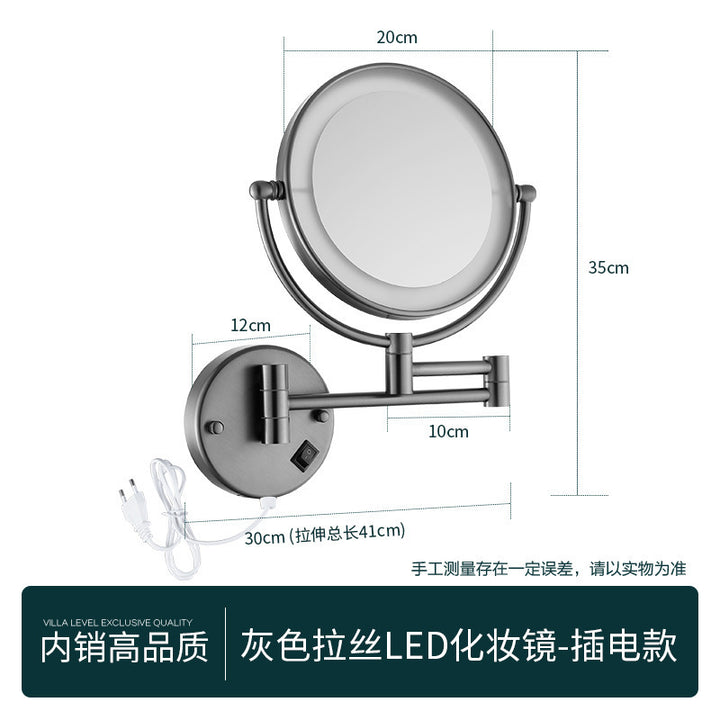 Hotel bathroom bedroom household bathroom folding all copper telescopic double-sided round cosmetic mirror led with light