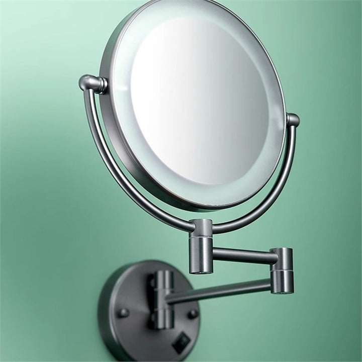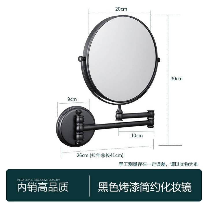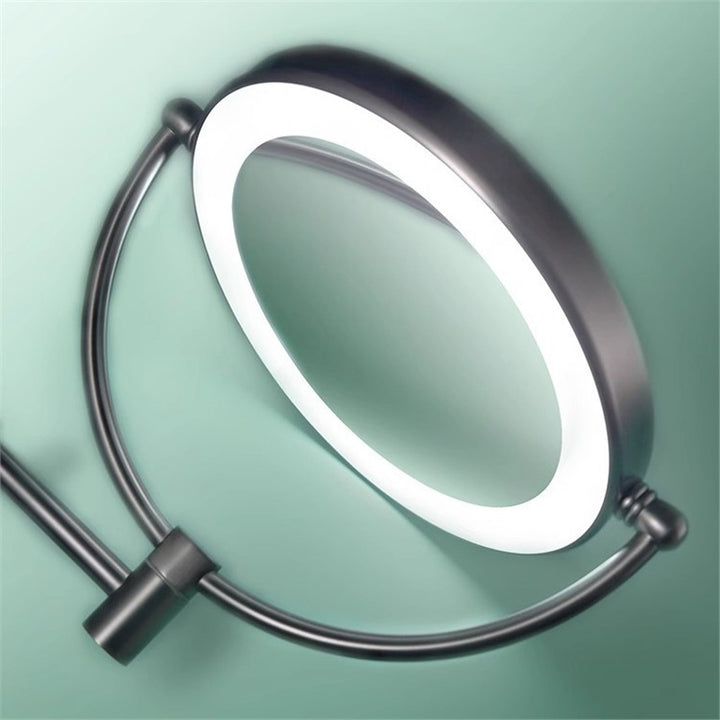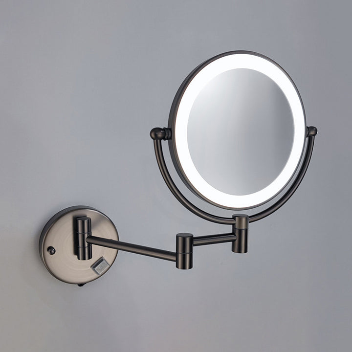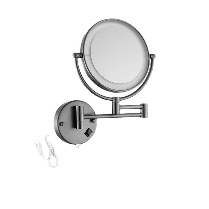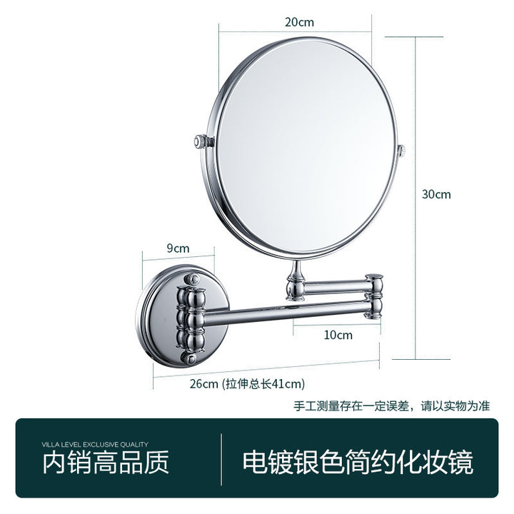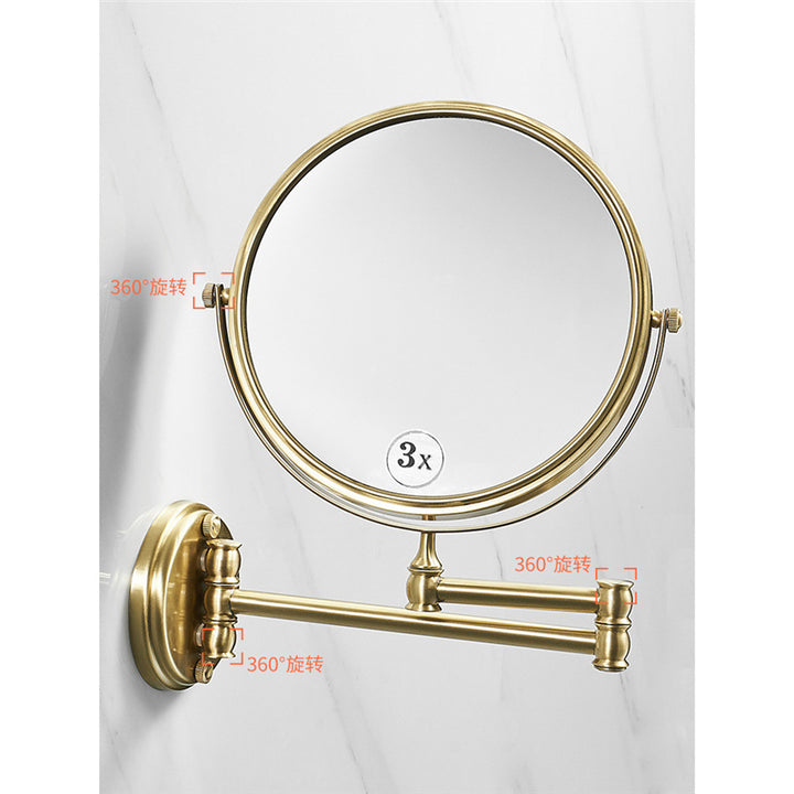 Hotel bathroom bedroom household bathroom folding all copper telescopic double-sided round cosmetic mirror led with light