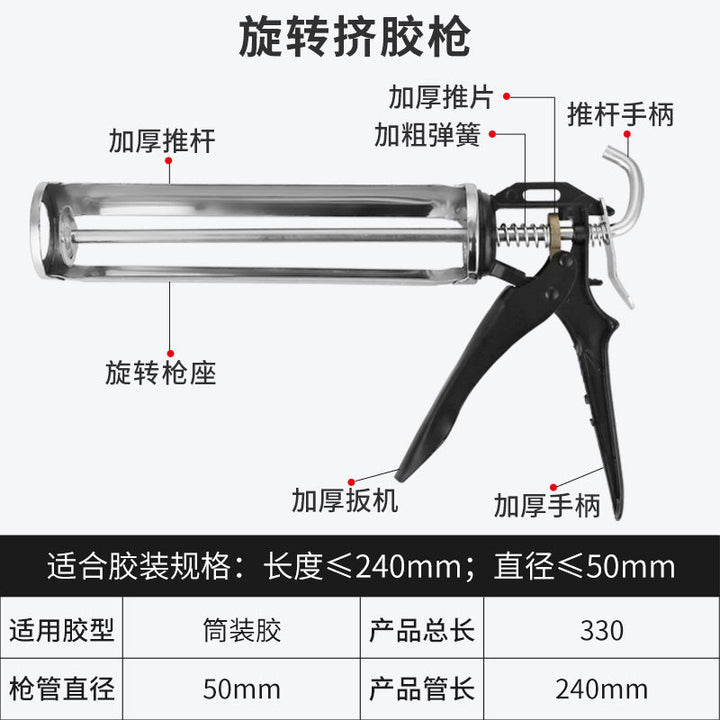 Household 360-degree rotating glue gun, planting bar glue gun, construction tools, aluminum alloy structural glue gun, beautiful seam pressing glue...