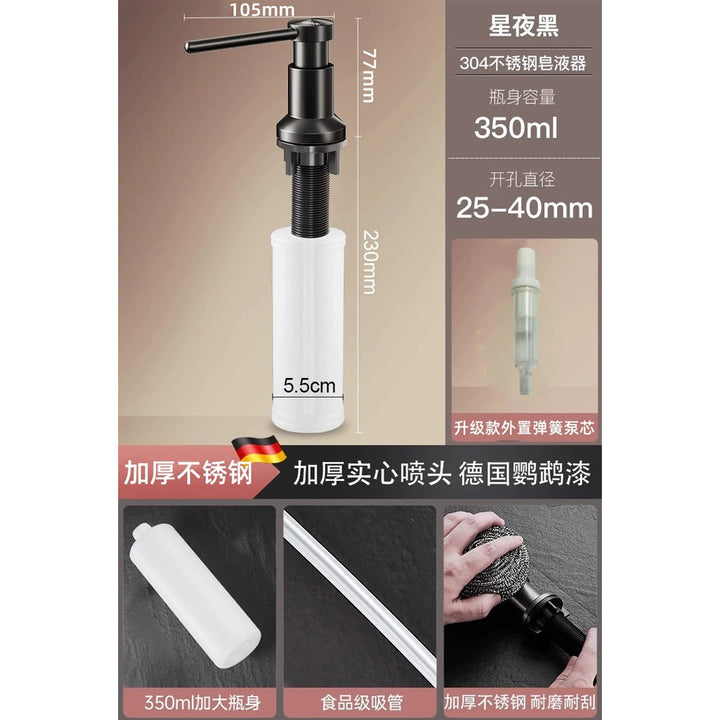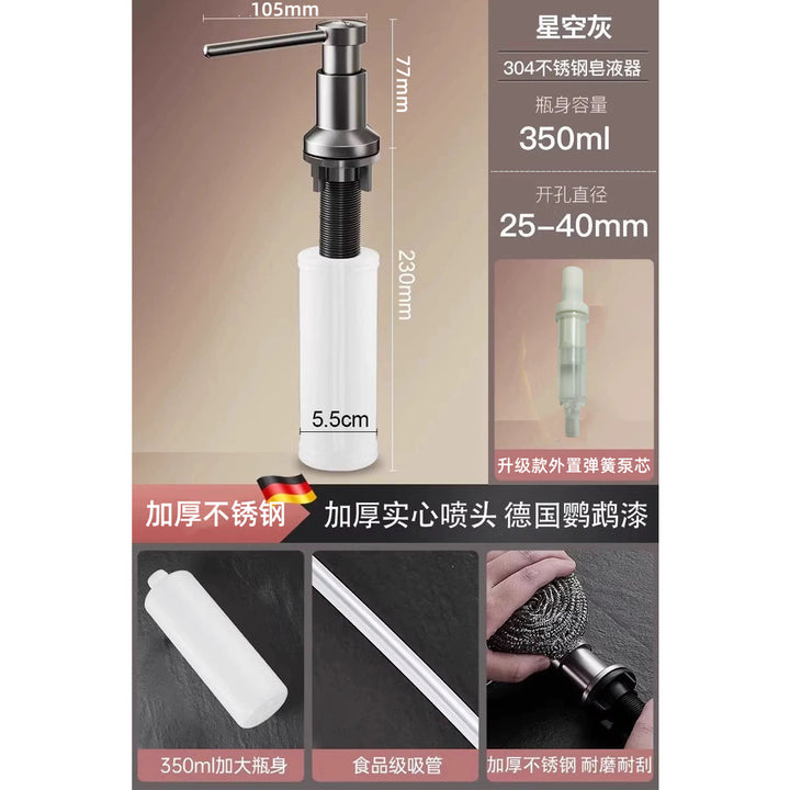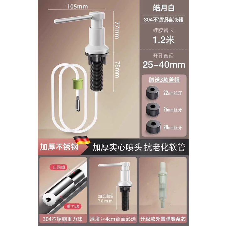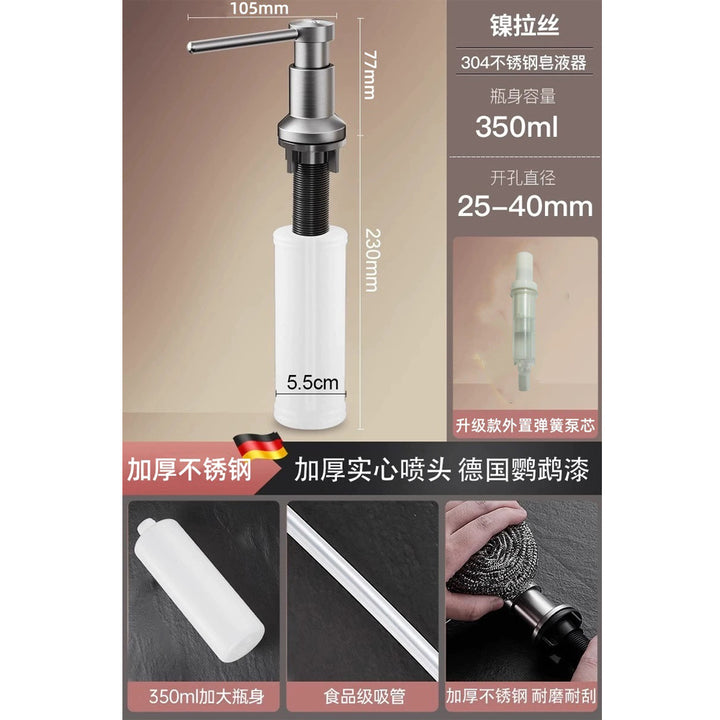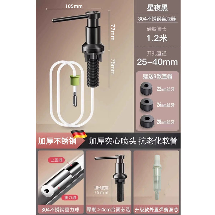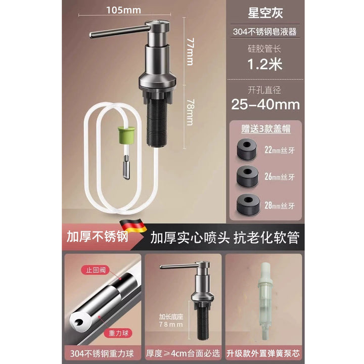 Household and commercial thickened 304 stainless steel press soap dispenser, sink sink detergent extender, soap dispenser