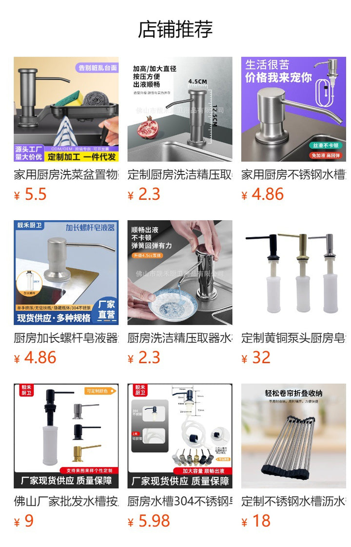 Household and commercial thickened 304 stainless steel press soap dispenser, sink sink detergent extender, soap dispenser