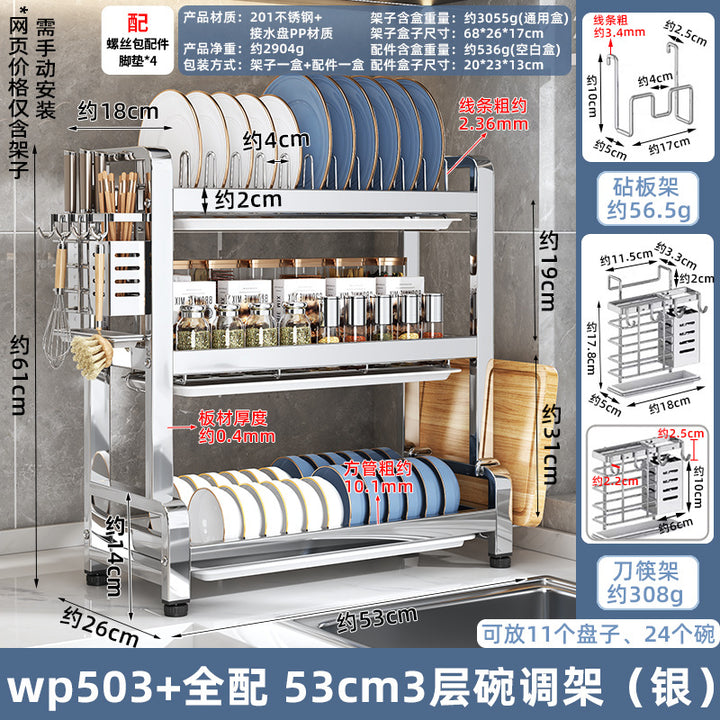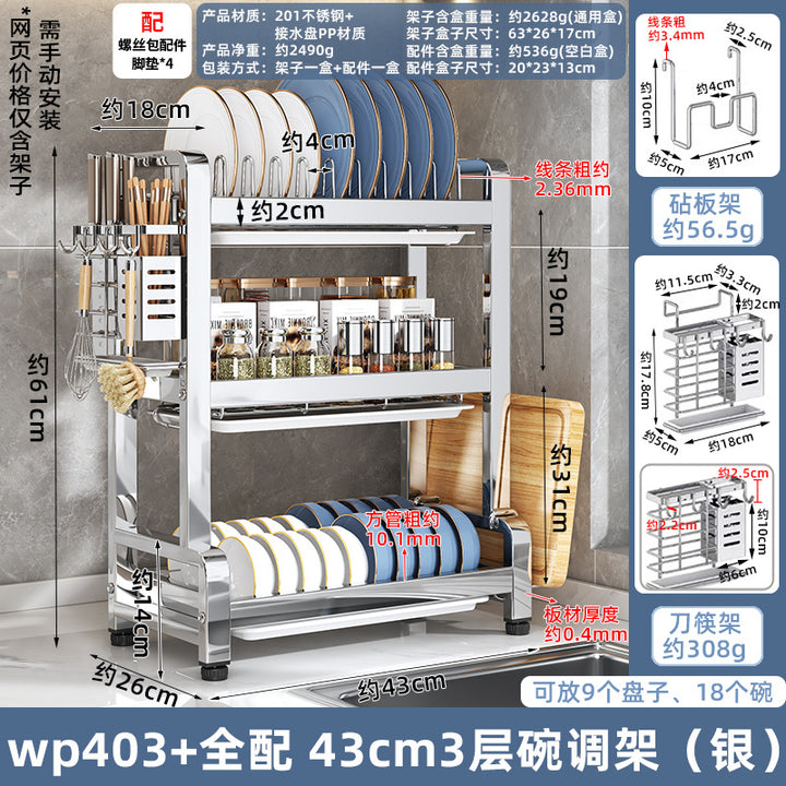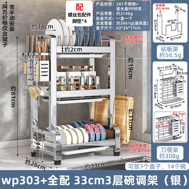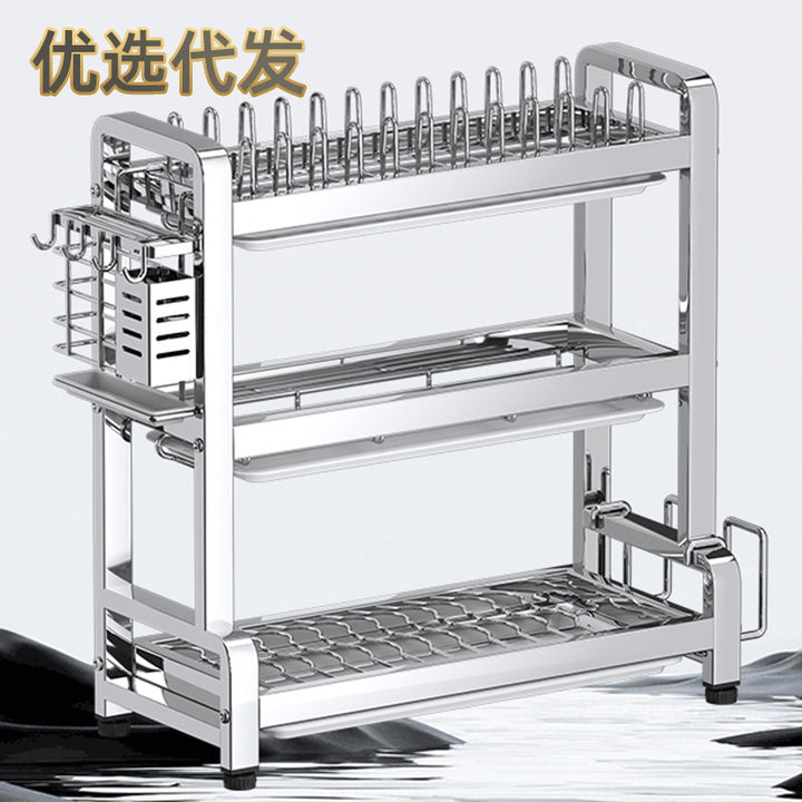 Household double-layer stainless steel bowl rack, sink drain storage, dish rack, thickened ch...
