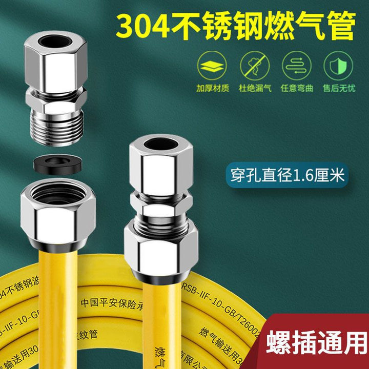 Household explosion-proof gas hose 304 stainless steel corrugated pipe removable head through wall natural gas pipe