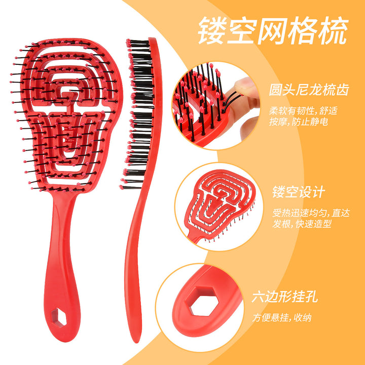 Household hollow plantain fan comb high value girl hair comb high cranial top fluffy massage ribs big curved comb