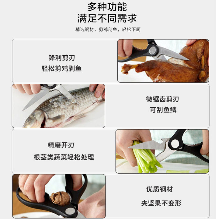 Household kitchen scissors wholesale multi-functional scissors food barbecue bone fish killing stainless steel strong chicken bone scissors