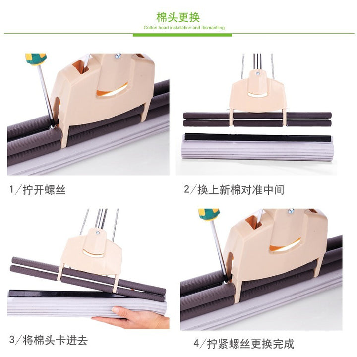 Household lazy cotton mop roller mop hand washable sponge mop absorbent mop mop set wholesale