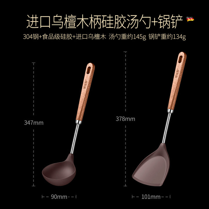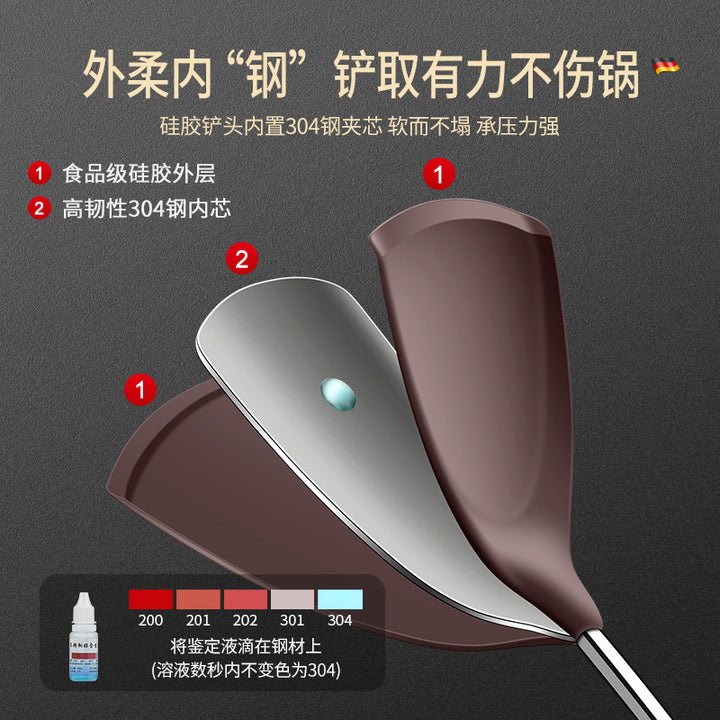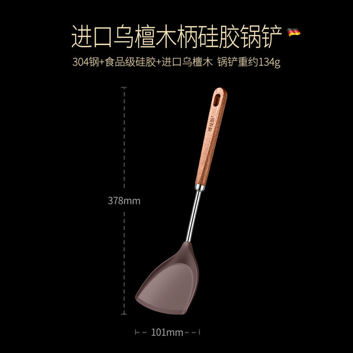 Household silicone spatula ebony handle spoon high-grade stainless steel cooking spatula non-stick pan frying spatula