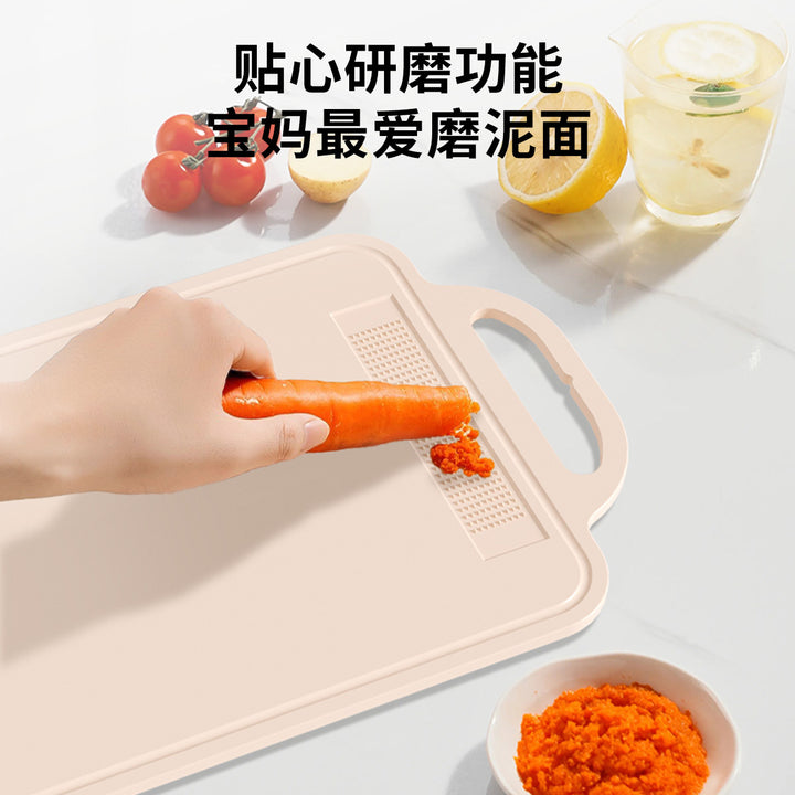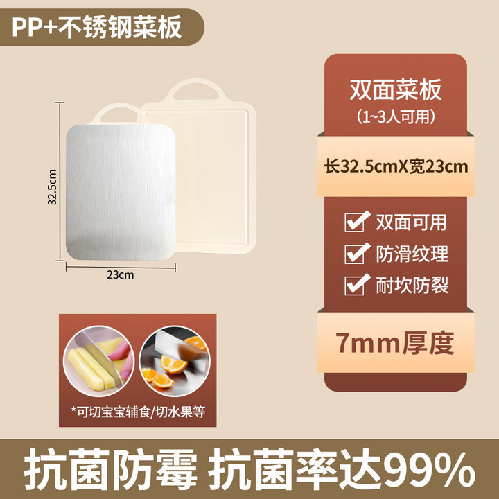 Household wheat straw double-sided cutting board antibacterial and mildew-proof stainless steel cutting board PP plastic with grinding fruit choppi...