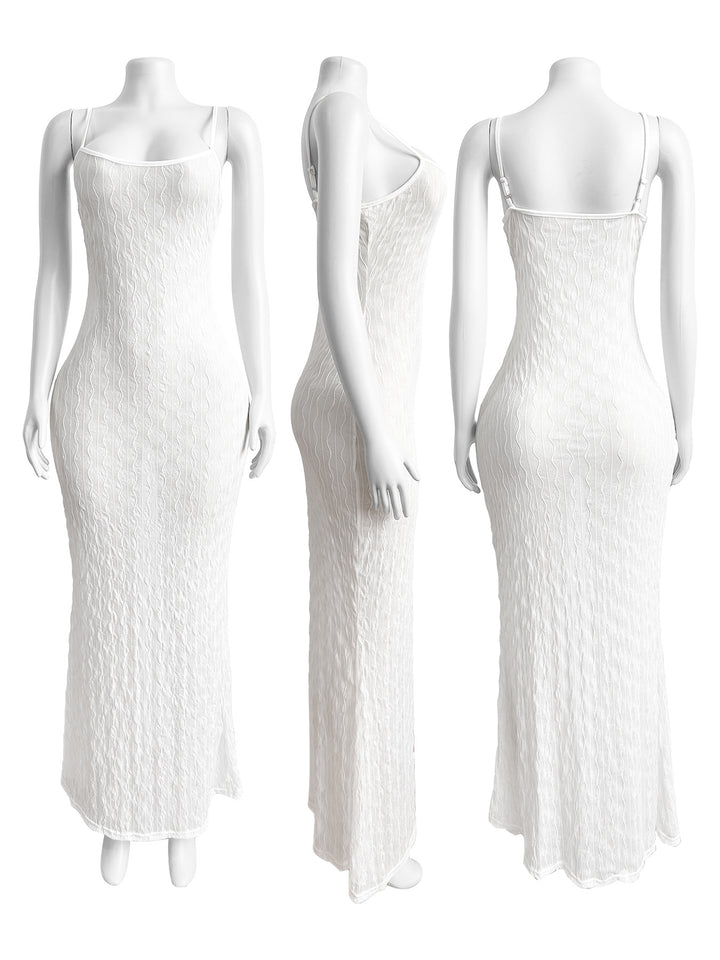 HR24027 European and American women's clothing, jacquard fabric, sexy semi-transparent suspender dress, long dress