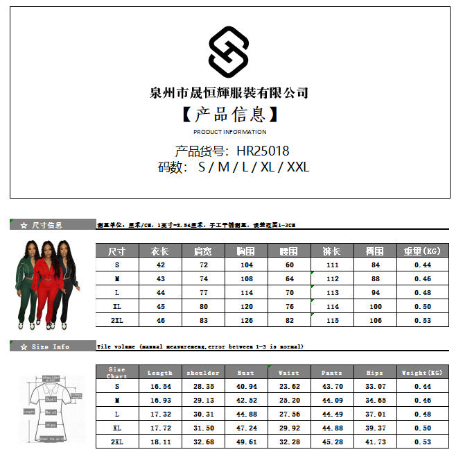 HR25018 European and American fashion women's clothing, double splicing contrasting color squeezed rib zipper micro-horn two-piece pants set
