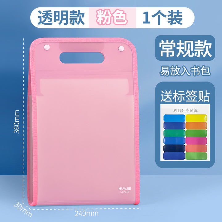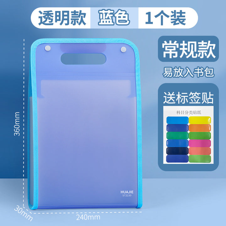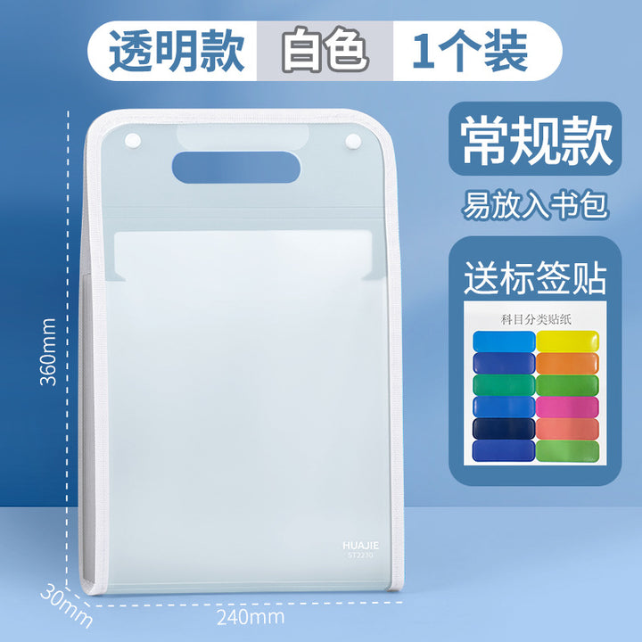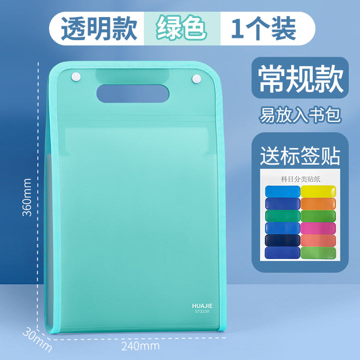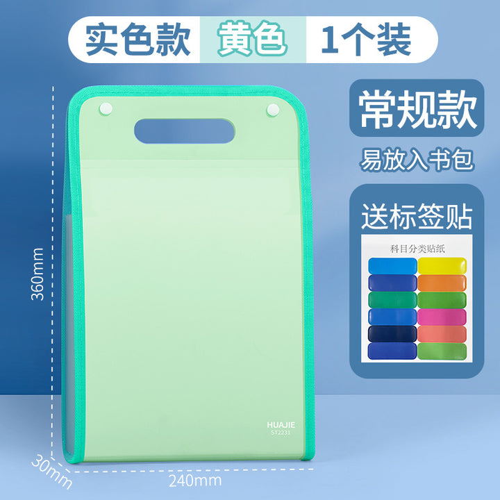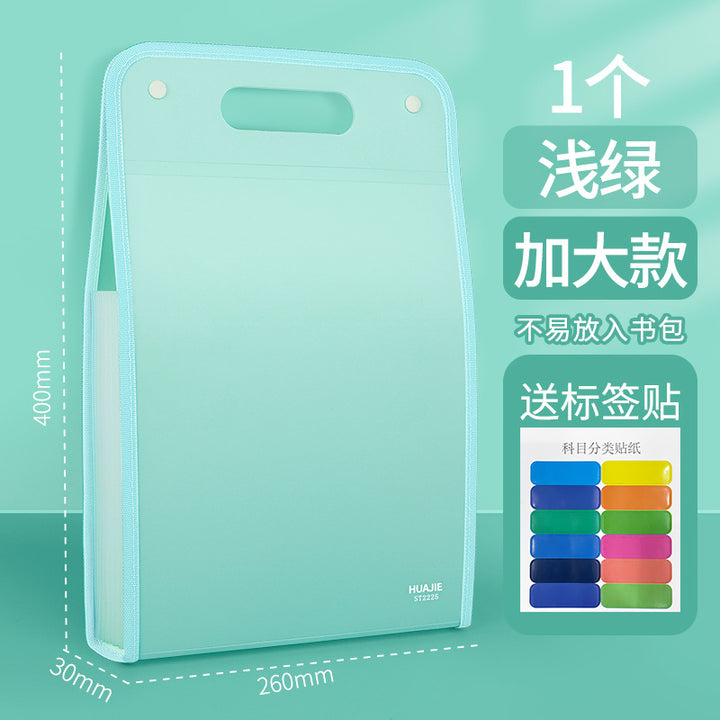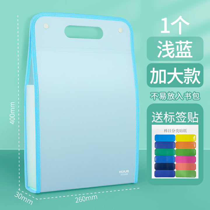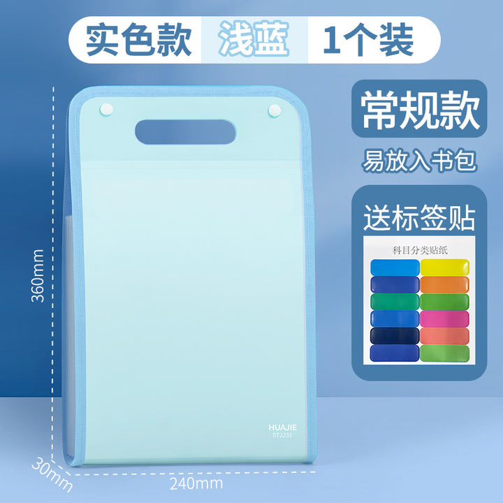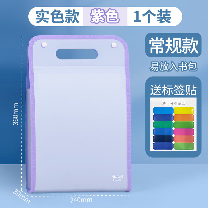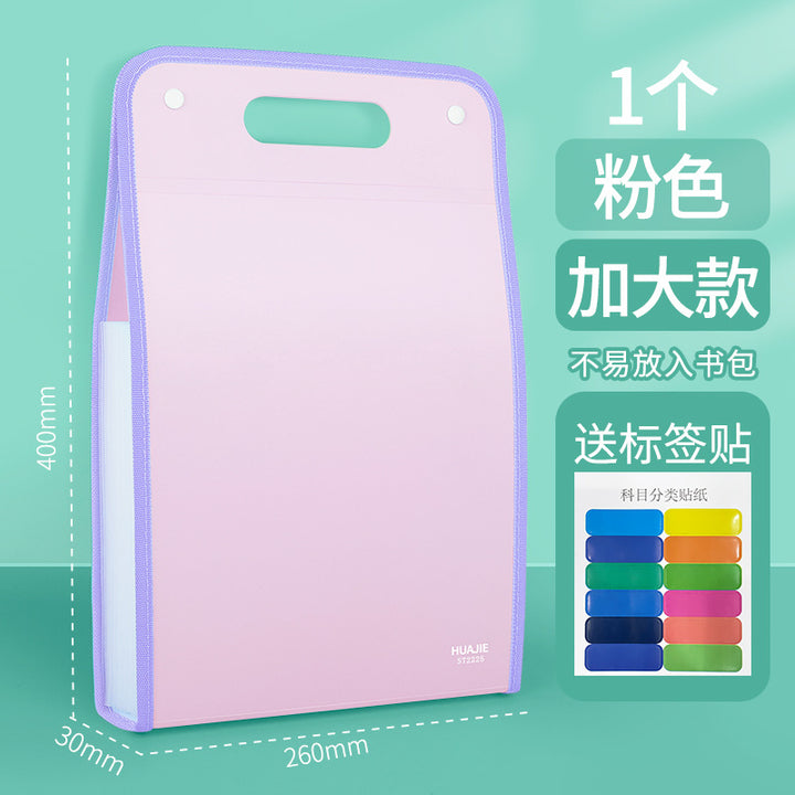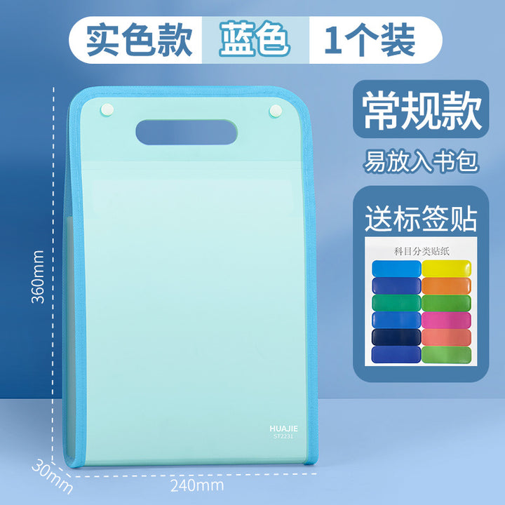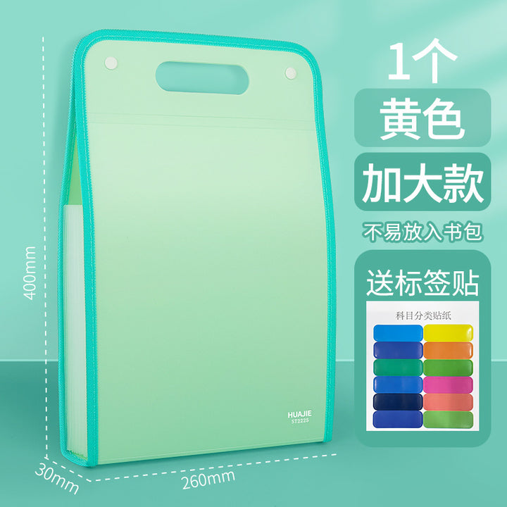 Huajie A4 Vertical Portable Organ Bag Folder Student Large Capacity Subject Classification Bag Test Paper Homework Storage Bag