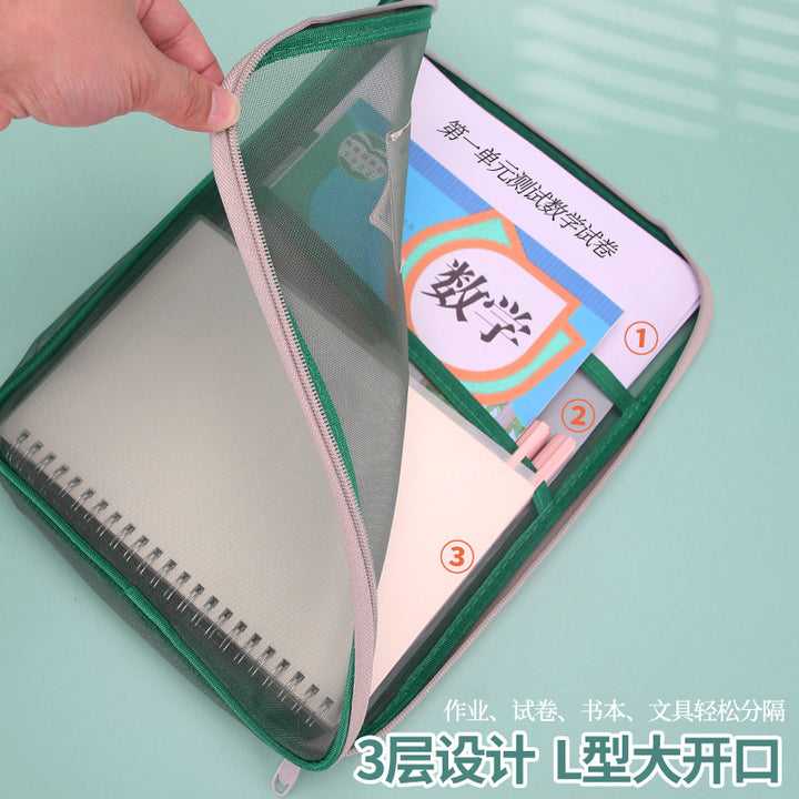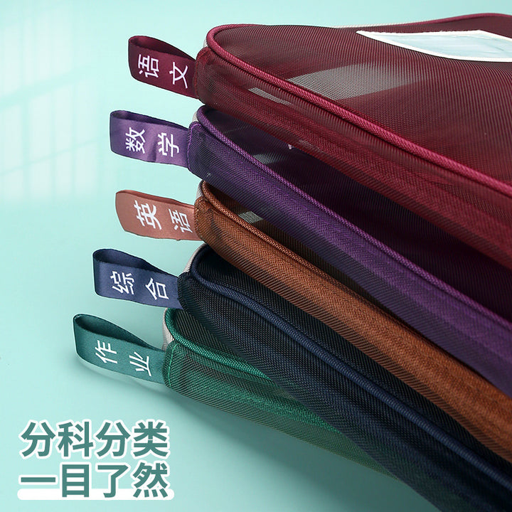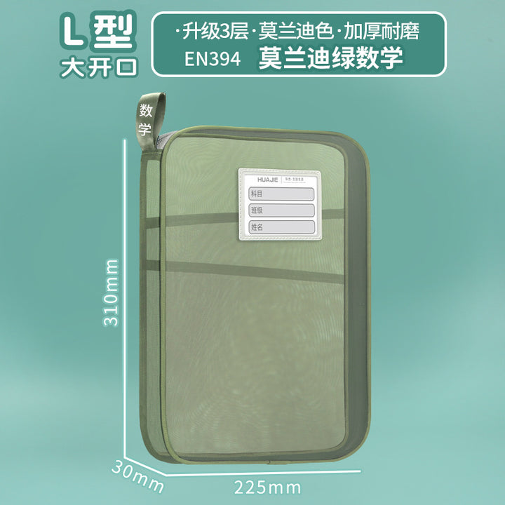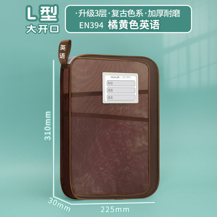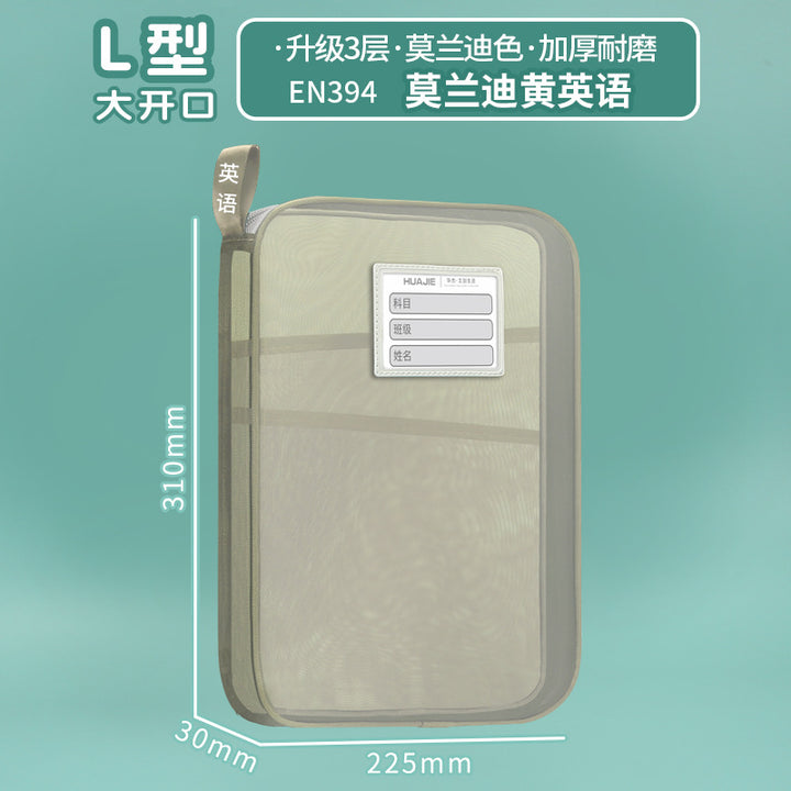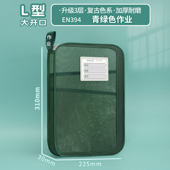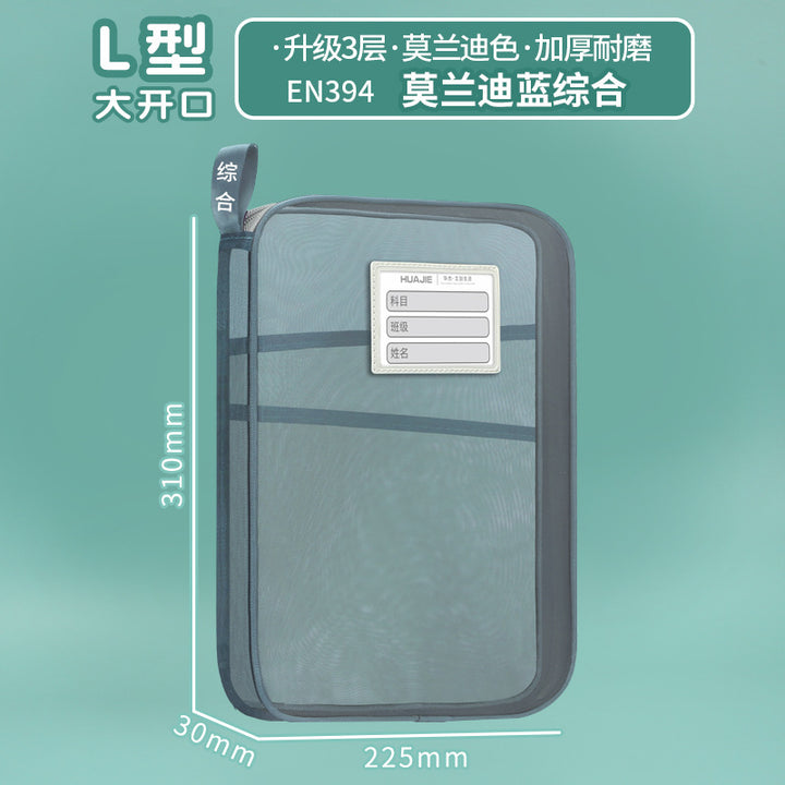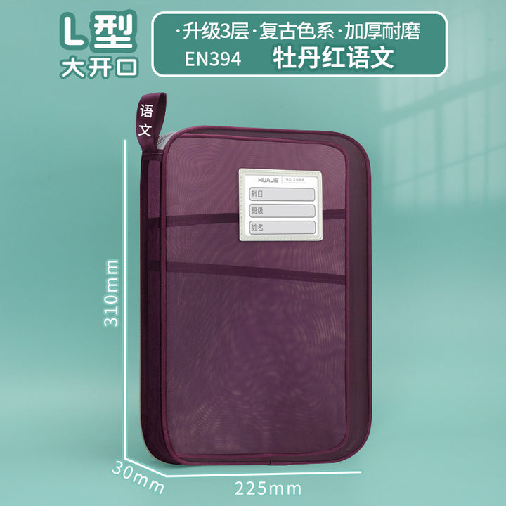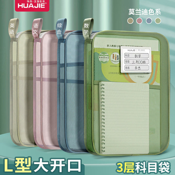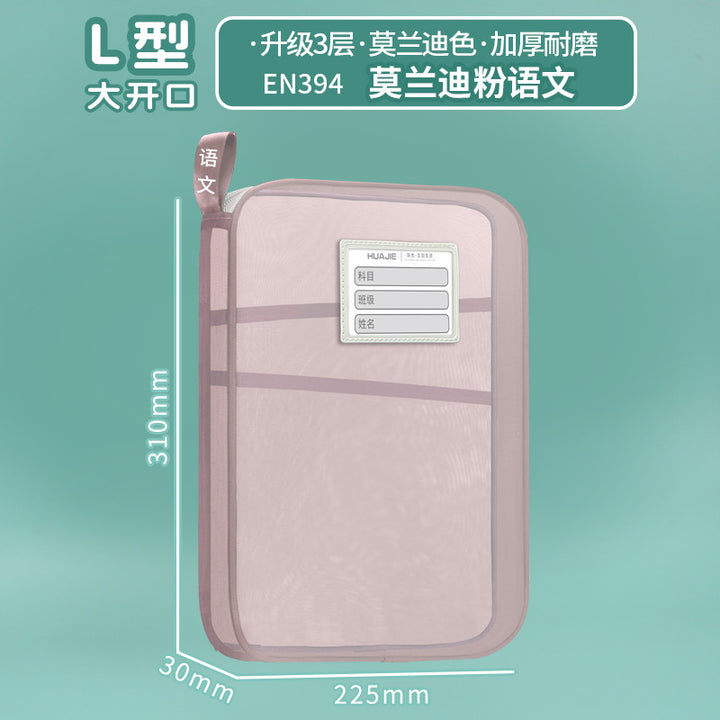 Huajie mesh yarn L-shaped subject classification bag Student transparent document bag Thickened zipper bag Subject classification