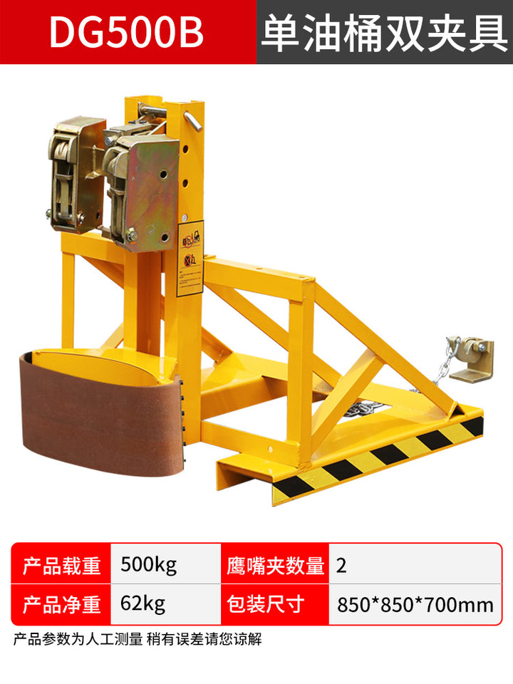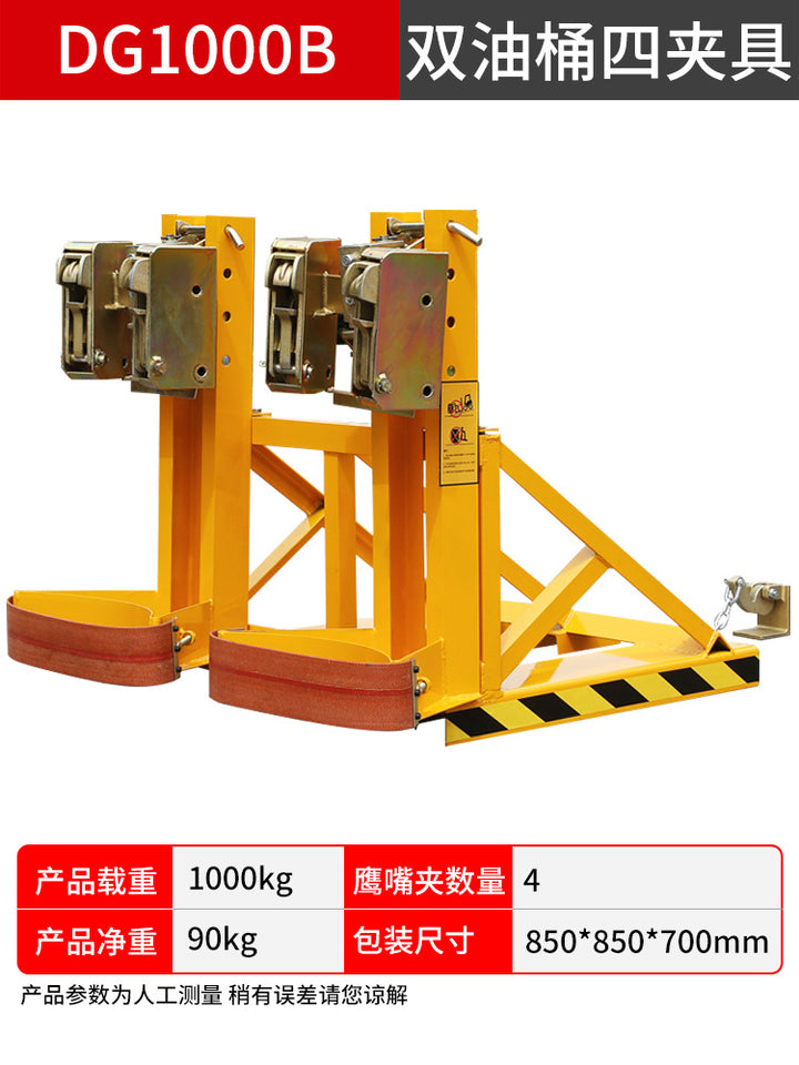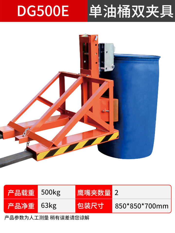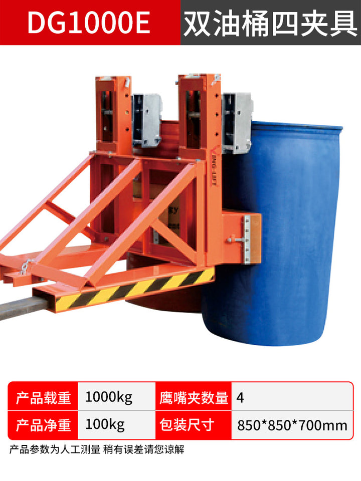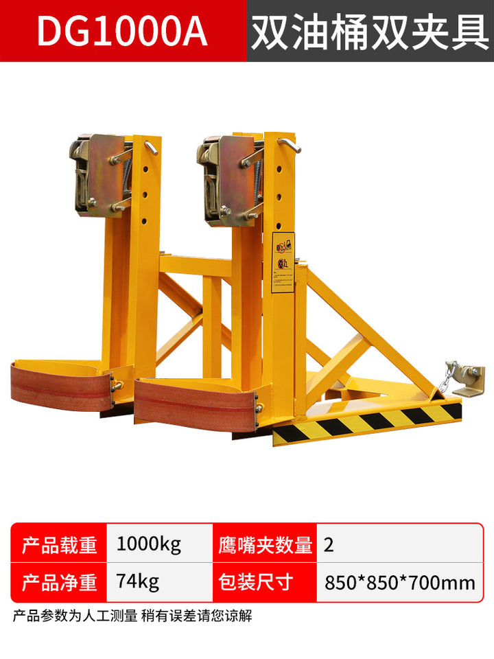 Hugong Fixture Heavy-duty Handling and Handling Double Barrel Forklift Stabilized Lifting Tongs Eagle Beak Double Barrel Clamp Barrel Grabber Oil B...