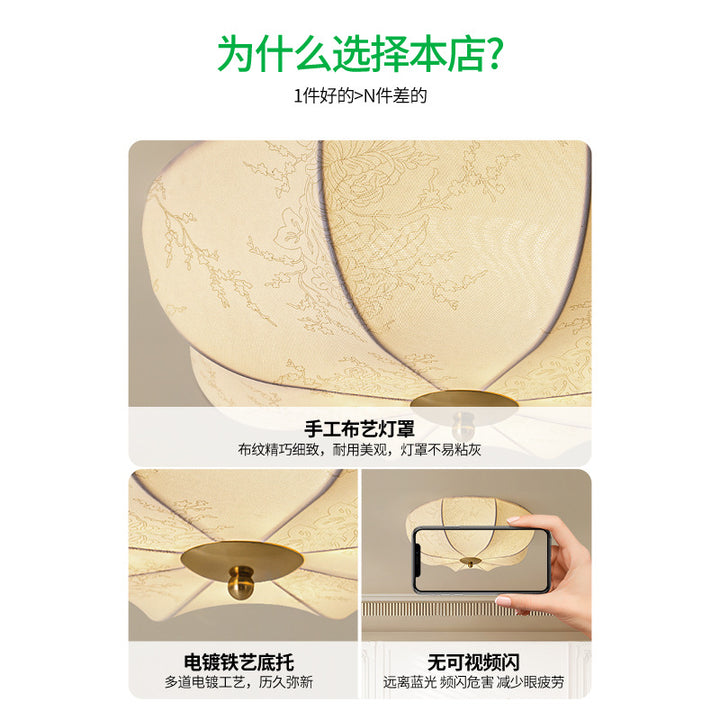 Huiyuan bedroom light French retro new modern simple fabric lighting master bedroom room ceiling light E