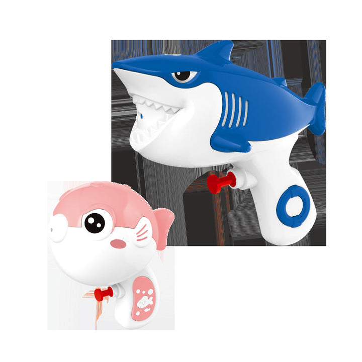 Shark water gun (opp bag), Geometric crocodile water gun (opp bag), Puffer fish water gun (opp bag), Tyrannosaurus rex (in opp bags), Triceratops (in opp bags) |