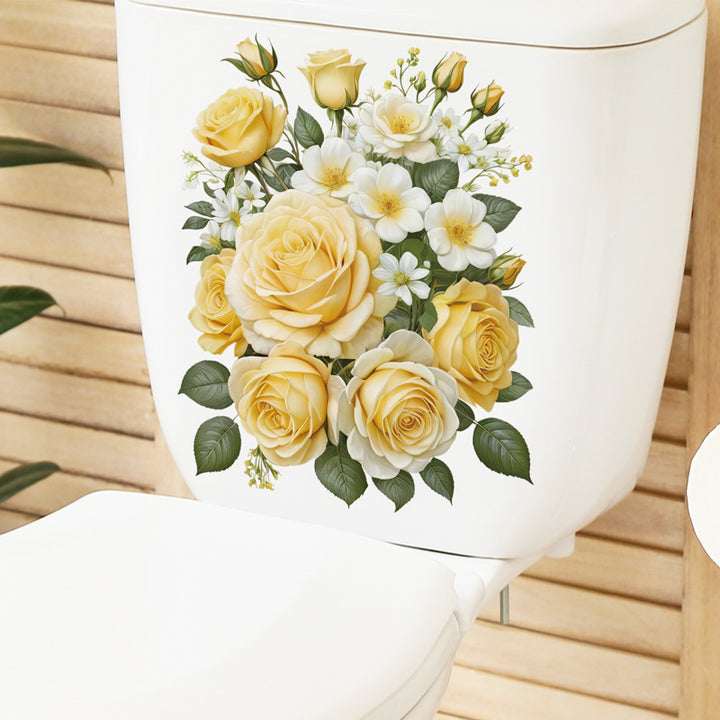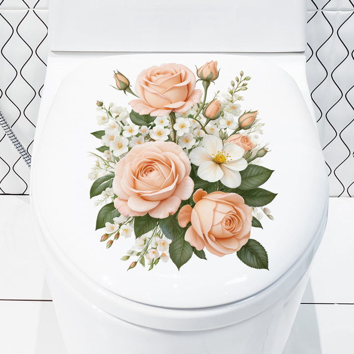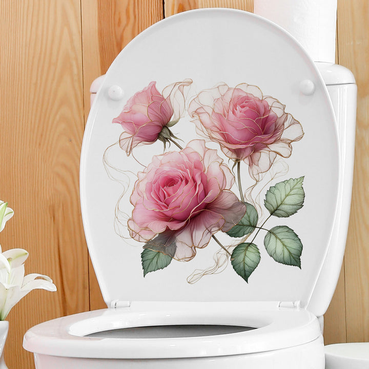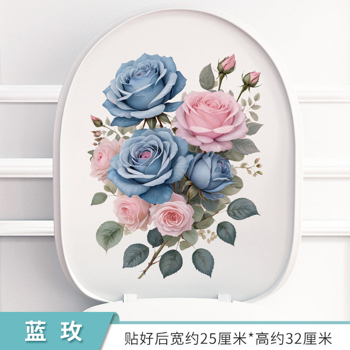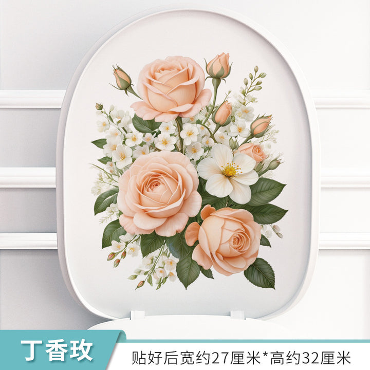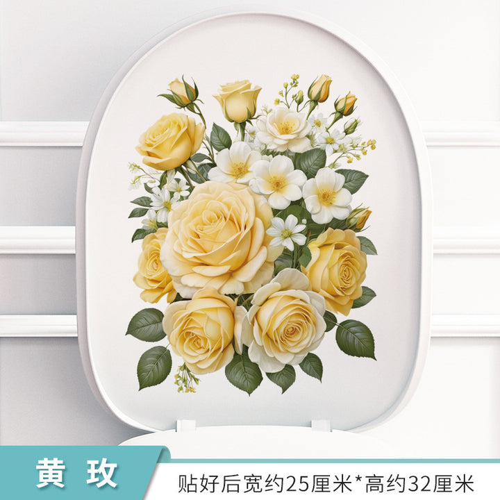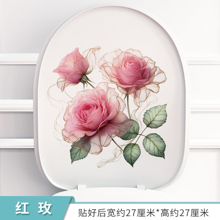 Hustle bank, rose flower toilet lid decorative sticker bathroom window glass plant flower removable wall sticker