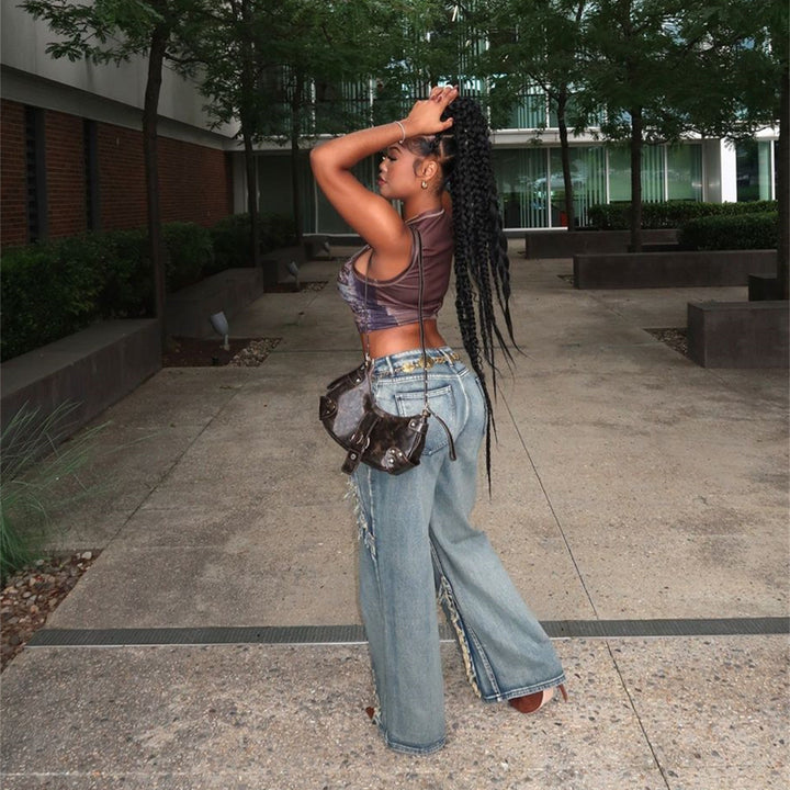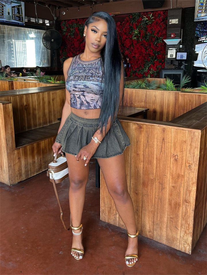In the summer of 2025, Europe, America and other will explode with digital printing, hot drilling, round neck pullover, exposed navel slim top, w...
